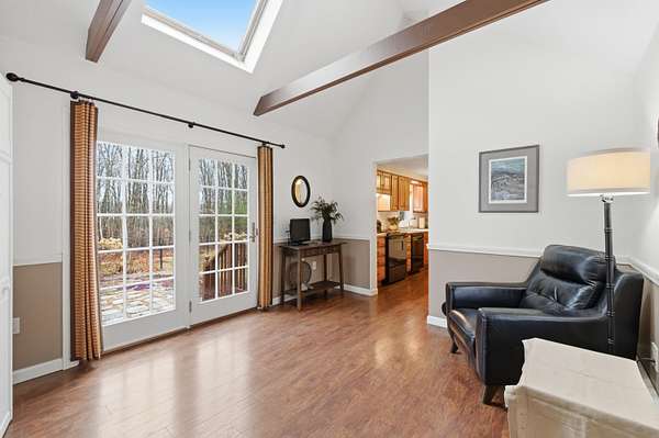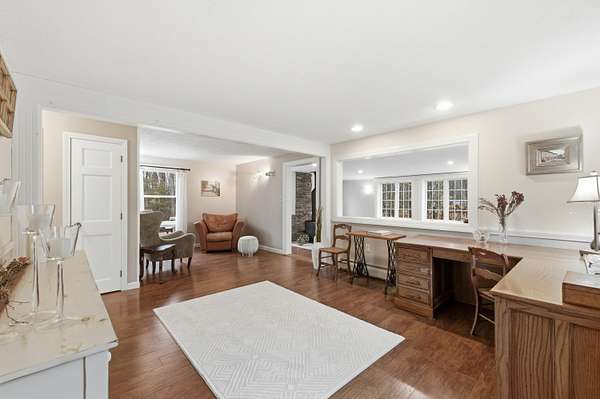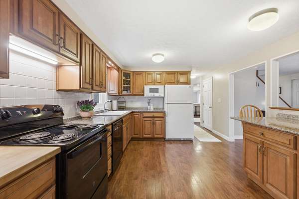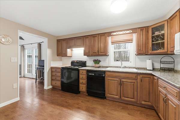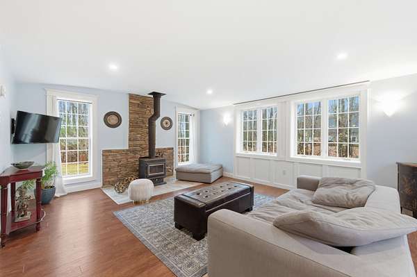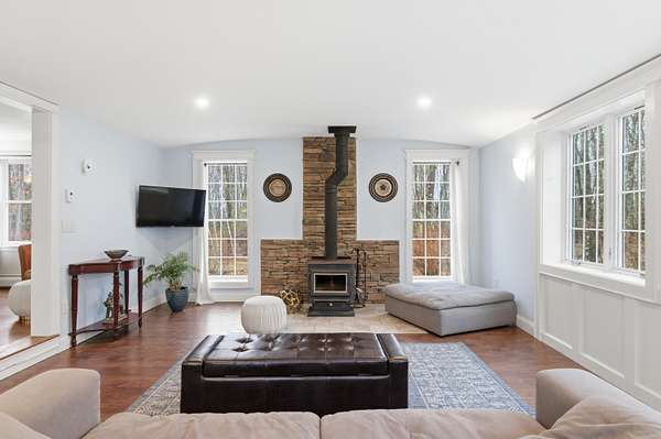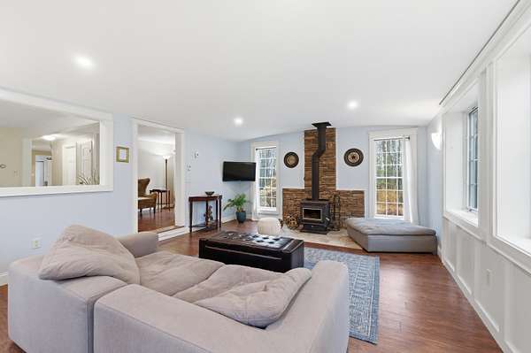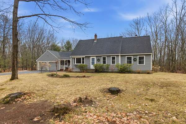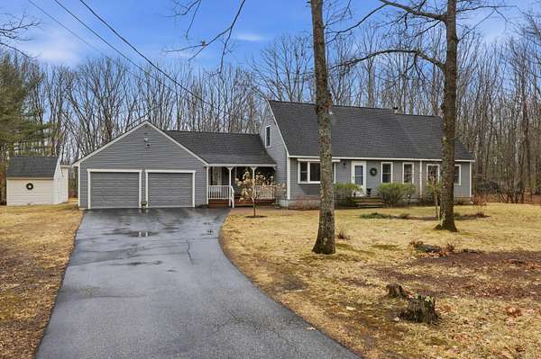 Nestled on a beautifully landscaped 3-acre lot, this impeccably maintained Cape is the perfect blend of comfort, style, and convenience. Imagine a life where you can enjoy the peace of nature while being just a short drive to the vibrant town, easy access to I-95, and with both the middle school and high school less than 5 miles away! Step into the heart of the home, featuring solid wood cabinetry, pantry and a breakfast bar. The inviting living area boasts a wood stove, perfect for cozy evenings. High vaulted ceilings and skylights create an airy atmosphere, ensuring the space feels open and bright all year round. The practical layout includes a spacious two-car garage with an attached workshop--ideal for DIY enthusiasts. Plus, two additional storage buildings provide even more room for your outdoor gear, hobbies, and seasonal décor. A unique perk for those seeking a bit of adventure, discover the hidden bunker room! This secret space can be used for storage, a private retreat, or even a fun hideaway for the kids. Retreat to the upstairs master bedroom where you'll find a ginormous walk-in closet that makes organization a breeze. This home is located in a tranquil and quiet neighborhood, perfect for enjoying peaceful evenings under the stars or leisurely strolls in the fresh air. A generator hookup ensures you're never left in the dark. Don't miss out on this incredible opportunity to own a piece of Kennebunk paradise! Schedule your showing today and experience the magic of 7 Littlefield Drive--where your dream home awaits!