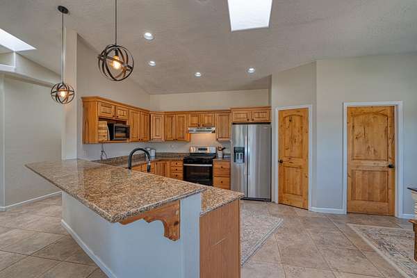 - High Ceilings, Main Level Primary, Skylights, Walk In Closets