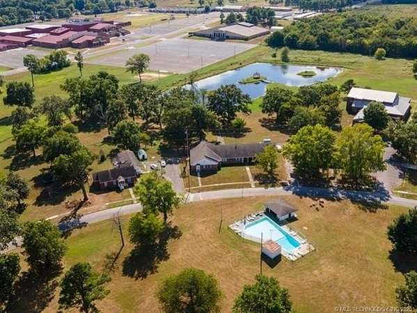 Discover a unique opportunity to own approximately 50 acres in a prime, central Tahlequah location. The property features multiple homes, office buildings, a school and gymnasium, livestock barn, sheds, RV park, swimming pool, locker room facilities, event hall, and a fully equipped commercial kitchen -- making it ideal for a wide range of uses.