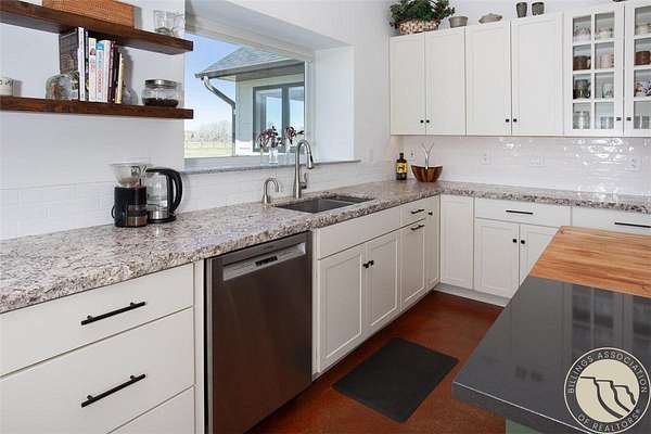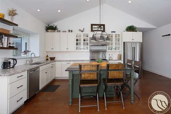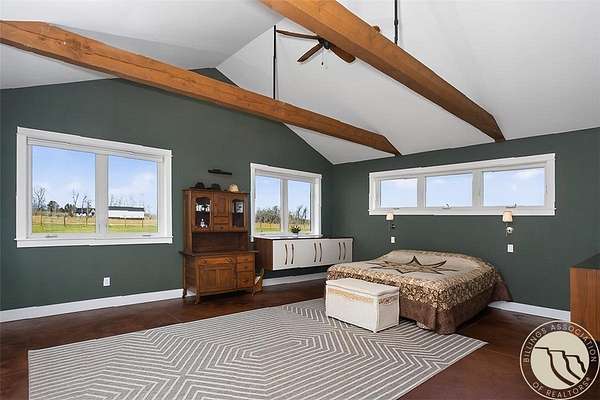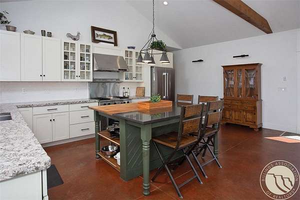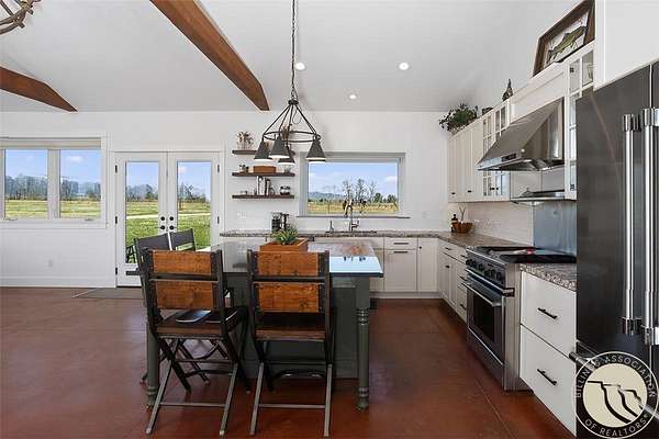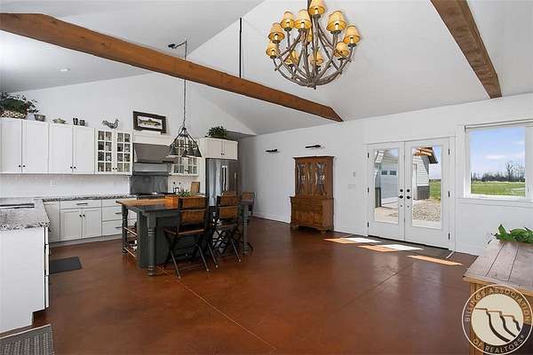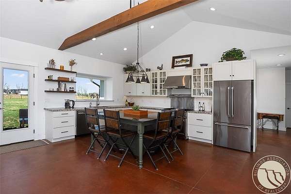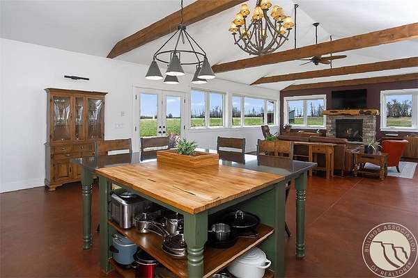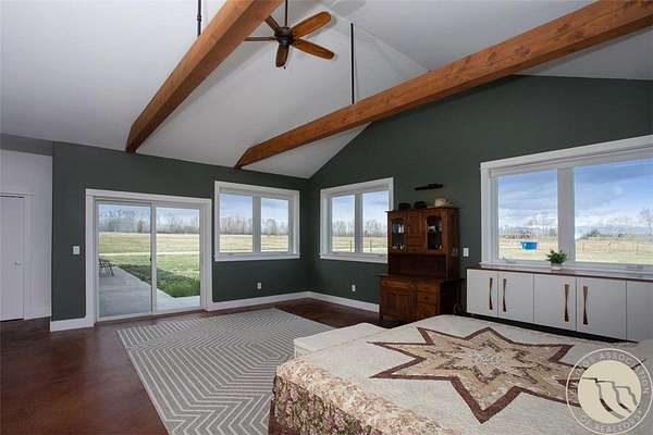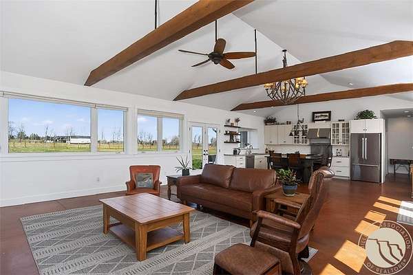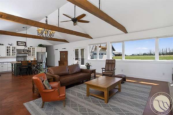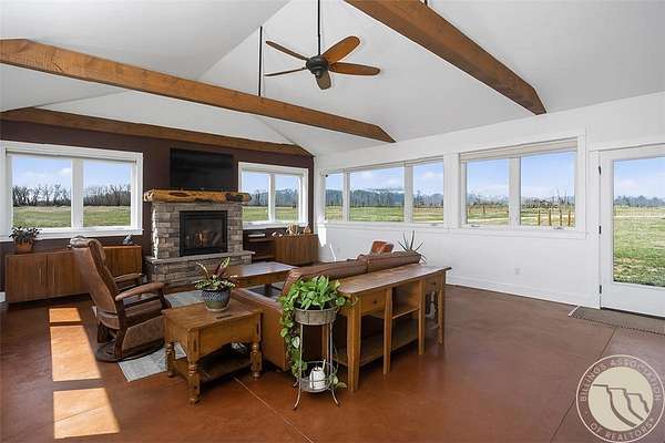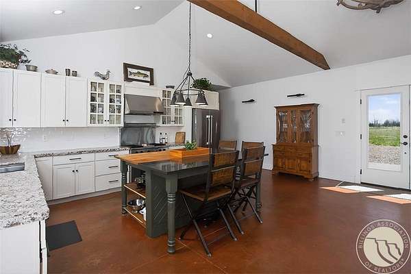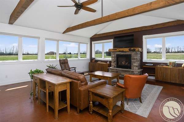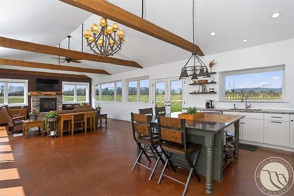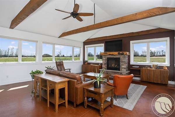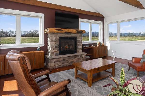 Welcome to 7 Meadowlark Circle in Roberts, a beautiful 3 bed, 2 bath ranch-style home on over six acres with stunning views of the Beartooth Mountains. This thoughtfully designed home features in-floor radiant heat powered by a high-efficiency gas boiler and durable concrete floors throughout. The open living area offers abundant natural light, vaulted ceilings with wood beams, and a rock-accented gas fireplace. The spacious primary suite includes a private bath and the same bright, open feel. An oversized two-car garage provides ample storage. Enjoy peaceful rural living with breathtaking mountain views right from your living room and bedroom.