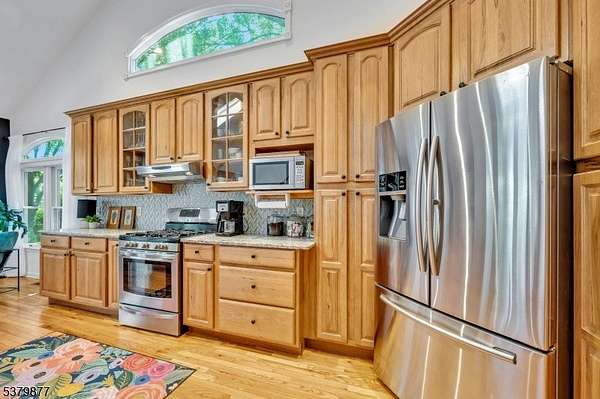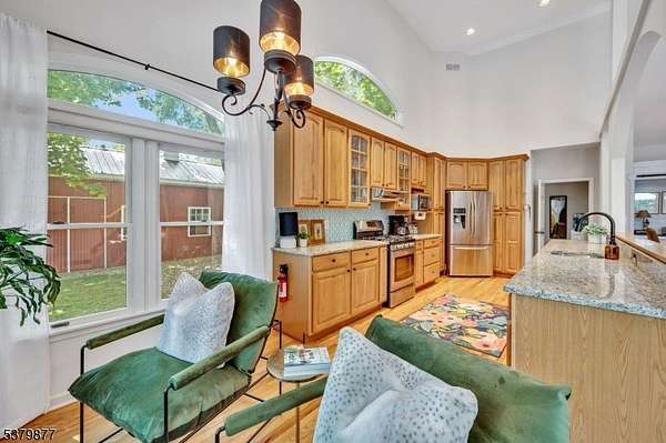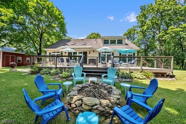 Lakeview retreat with breathtaking views. Escape to this one-of-a-kind, custom three bedroom, three bathroom single story home. Nestled on a magnificent 5.31-acre lot at the end of a private drive, this home offers unparalleled privacy and spectacular lake views. Step inside and be captivated by the open floor plan, hardwood floors and a soaring, two-story great room that welcomes you with abundant natural light, multiple skylights, and a cozy natural gas fireplace perfect for relaxing or entertaining. Step through the patio doors onto the expansive deck and take in the incredible views of Edison Lake. The updated kitchen is a chef's dream, featuring granite countertops, custom hickory cabinetry, and sleek stainless steel appliances. The spacious main floor primary suite provides a peaceful sanctuary with its own private bath, a walk-in closet, an additional reach-in closet. The upstairs loft offers endless possibilities, whether you envision a home office, a creative studio, or a comfortable family lounge. The large partially finished basement adds even more living space, with a recreation room, office, storage galore, and a full bathroom. The home features an attached two car garage as well as an adorable red barn with additional parking and an insulated workshop. Lot is also crossed by the trout stocked Pohatcong creek. Underground natural gas, electric, and high speed internet lines contribute to the beauty, efficiency and reliability of this amazing 23 year old home."