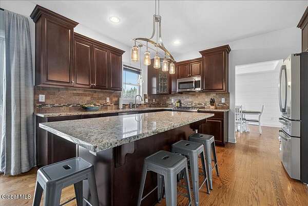 - Dishwasher, Disposal, Gas Water Heater, Humidifier, Microwave, Oven, Range, Refrigerator, Water Softener, Wine Cooler