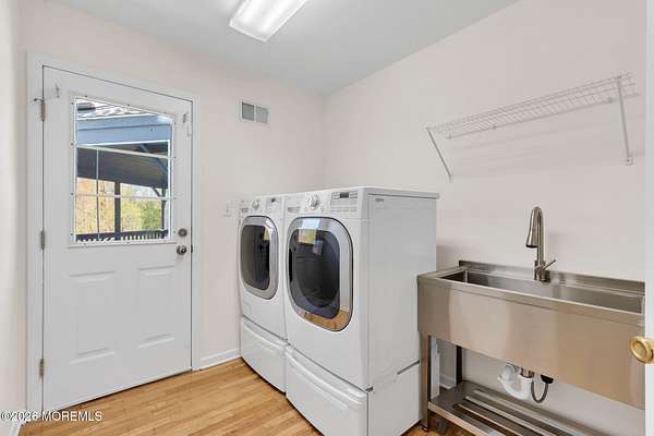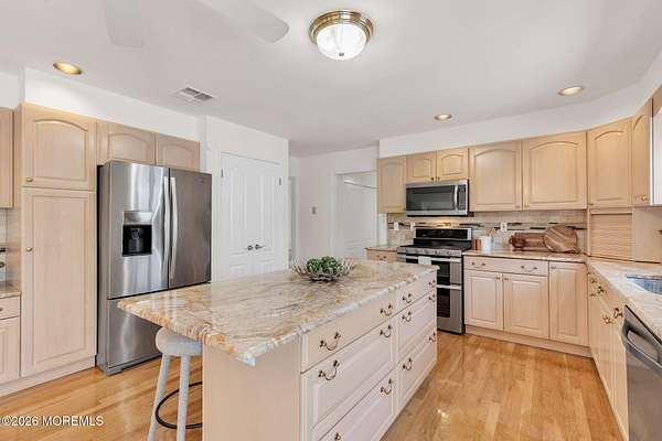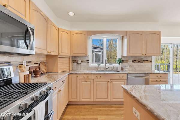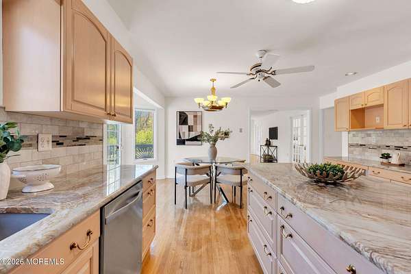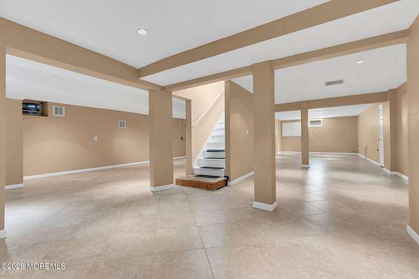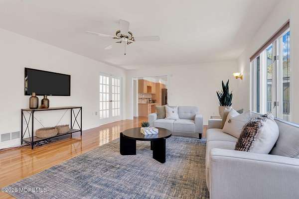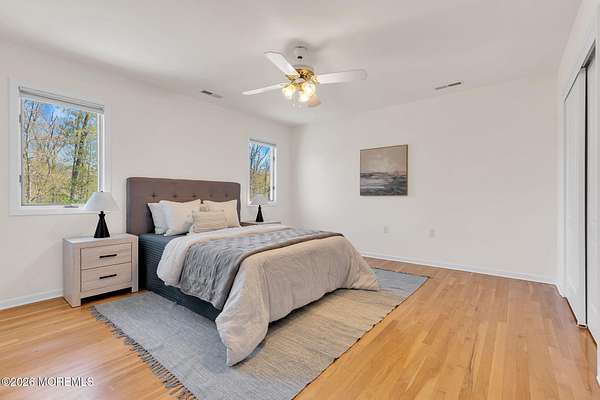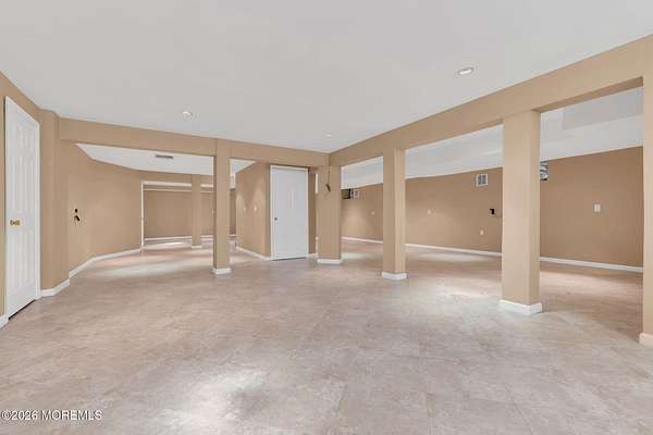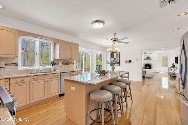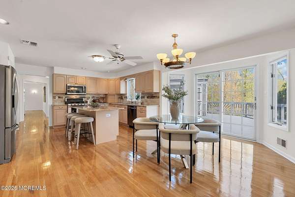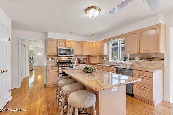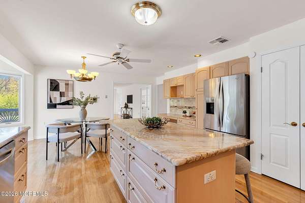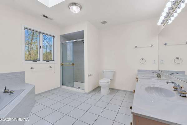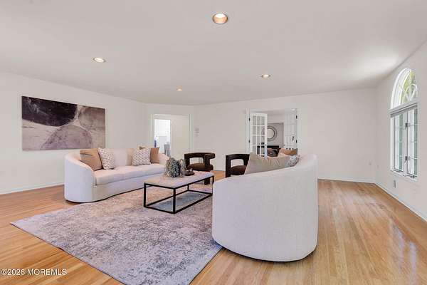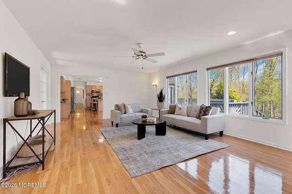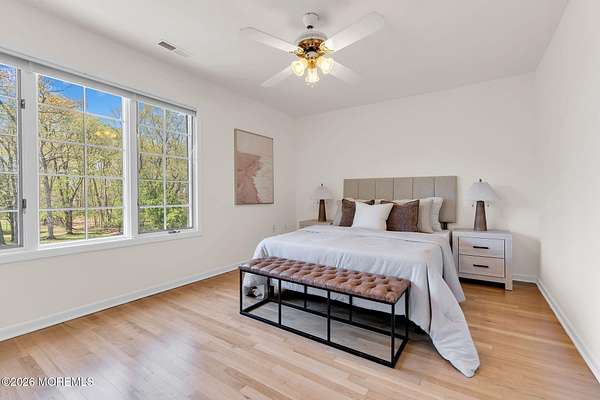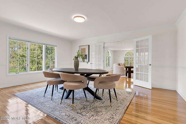 Welcome to this magnificent custom Colonial set on 1.88 private acres in Manalapan's prestigious Elton Pointe Estates. This stunning brick-front home offers 5 bedrooms, 3 full baths, and a 3-car attached garage, all set on beautifully professionally landscaped grounds with a serene, wooded backdrop. Step into the grand double-door foyer featuring dual closets, gleaming hardwood floors throughout the entire home, and a stunning bridal staircase that makes an immediate impression. The elegant living room showcases a dramatic two-story ceiling with skylights, filling the space with an abundance of natural light. The inviting family room features a gas fireplace and striking Palladian windows on two sides, bathing the space in natural light, and flows seamlessly into the gourmet eat-in kitchen. The kitchen is complete with custom cabinetry, stainless steel appliances, center island, pantry, and a beautiful tile backsplash. Sliding glass doors lead to a spacious deck featuring a screened-in gazebo a skylight perfect for entertaining or relaxing while enjoying the private, wooded setting. The formal dining room, accented with French doors, offers an ideal space for gatherings. The first floor also includes a generously sized bedroom, full bath, and a convenient laundry room with slop sink ideal for guests or multi-generational living. Upstairs, the bridal staircase overlooks the living room and leads to four spacious bedrooms, including a luxurious primary suite with a spa-like bath featuring a soaking tub, skylight, and dual vanities, along with his-and-hers walk-in closets. A full hall bath with double sinks completes the second level. Additional highlights include a full basement with access to the 3-car garage, underground sprinkler system, central vacuum, and dual-zone gas heat and central air for optimal comfort and efficiency. The beautifully landscaped grounds provide exceptional privacy and tranquility. This exceptional home offers space, elegance, and privacy truly a must-see!