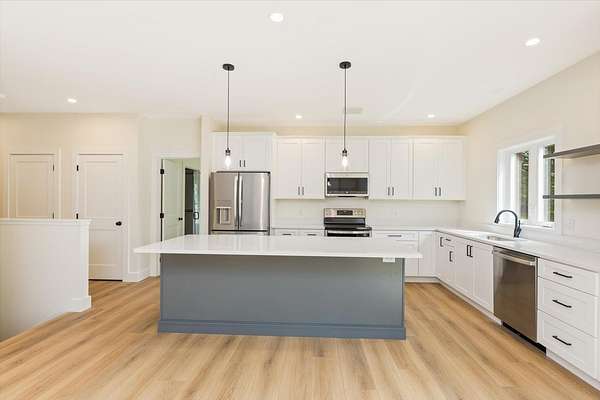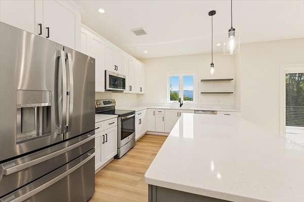 Stunning view of Crotched Mountain, one level living, completely finished turn key home with grass already growing. Brand new construction equals worry-free living at its best! This well-insulated, high-efficiency ranch-style home offers the ease of one-floor living. Thoughtfully situated on 4+ serene acres, this home provides peaceful and private outdoor spaces, along with a dead on view of Crotched. Central air, a fully applianced granite kitchen, and an attached 2-car garage are just some of the many amenities this beautiful home has to offer. The lovely open-concept kitchen, living, and dining area flows seamlessly, while the primary bedroom features an en-suite bath and spacious walk in closet. Two additional bedrooms provide plenty of space for family or guests. The large, open, walk out, basement could easily be finished to add additional living space, a playroom, or a home office--the possibilities are endless. Built by a local contractor with a reputation for paramount attention to quality, this home is just a short walk to the charming village of Hancock. This quintessential New England town offers easy access to Norway Pond, where you can enjoy the beach in the warmer months, along with summer concerts that bring the community together. Less than 10 minutes from Peterborough, you'll be close to shops, restaurants, and more while enjoying the peaceful, small-town vibe Hancock has to offer.