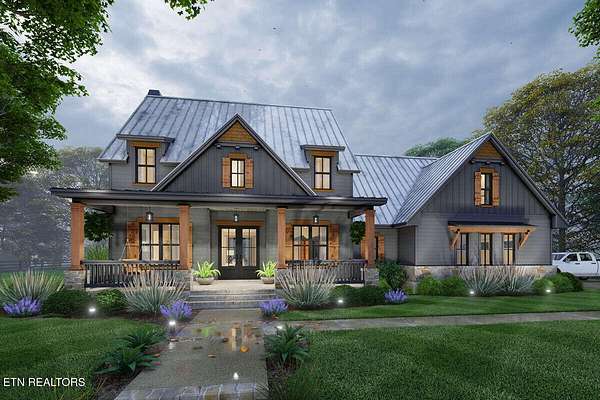 Honors Home Services General Contractors offering this spectacular plan to be built set on a beautiful 5-acre lot in an exclusive estate neighborhood with mountain and lake front views, this to be built Modern Farmhouse combines timeless charm with thoughtfully designed living spaces and breathtaking mountain views. Offering approximately 2,900 square feet of living area, this two-story plan features 4 bd and 3.5 baths, with 375-square-foot bonus room upstairs--perfect for a guest suite, playroom, or additional storage. The home's exterior radiates curb appeal, with a long front veranda accented by stone pillars, open railings, and a double-door entry. Around back, a generous 33' x 10' covered porch provides the ideal spot to unwind and take in the scenery. A side-loading two-car garage keeps the focus on the home's beautiful facade and creates a clean, welcoming approach. Inside, the open layout is perfect for both everyday living and entertaining. The foyer is flanked by a study and a formal dining room, leading to a spacious family room with a cozy fireplace and French doors opening to the rear porch. The chef's kitchen features a large center island, modern appliances, and a walk-in pantry that offers abundant storage. The main-level owner's suite is a true retreat with vaulted ceilings, private porch access, dual walk-in closets, and a luxurious bath with dual vanities, soaking tub, and separate shower. Upstairs, two additional bedrooms share a hall bath, while a versatile game room and balcony provide extra space for relaxation or play. A spacious bonus room, third bath, and walk-in storage complete the upper level. A blend of refined design, modern comfort, and stunning natural surroundings make this Modern Farmhouse an exceptional opportunity to build your dream home in one of the area's most desirable estate settings. Contact us to today to have this built to your specifications!