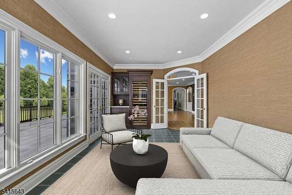 This stately 5 bedroom/5.2 bath Collie Mannion Custom home offers a substantial living space suited for those prioritizing craftsmanship, privacy & long-term utility. At approximately 7300 sqft, this home, set on 5.46 acres on a quiet cul-de-sac, provides a retreat-like setting in a prime Roxiticus Valley neighborhood. A grand 2-story foyer introduces a floor plan organized around generous rooms, high ceilings & natural light. The 18-ft-high great room w/ floor to ceiling stone FP & adjacent mahogany office offer a balance between work & home life, supported by well-scaled gathering areas & a recently updated bar/sun room w/ custom built mahogany Subzero wine fridge, designed for entertaining w/ ease. The kitchen & oversized breakfast room boast abundant storage, a butler's pantry & a secondary staircase that enhances household flow. Multiple French doors connect the interior to the expansive deck & outdoor areas. Upstairs, the primary suite features a cozy sitting room w/ FP, a large bath & 2 WIC's. An additional 2 en suites, along w/ 2 additional bedrooms sharing a J&J bath & a spacious laundry room grace the 2nd floor. The home's 6-bedroom septic & walk-up attic provide future expansion options. The walkout lower level adds more versatile, usable space, w/ direct access to the patio & surrounding landscape. This home has been carefully maintained & includes features like a whole-house generator & heated garage, supporting long-term value & confidence in ownership.