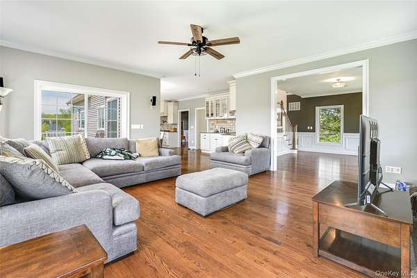 Tucked away in a quiet neighborhood in the desirable and prestigious Blackwatch Subdivision with Wappingers Schools, this beautifully maintained home offers the perfect blend of comfort, style, and convenience. Walk into this spacious foyer with 3 bedrooms and 3 bathrooms, this beautifully maintained residence features a perfectly flowing floor plan that is ideal for both everyday living and entertaining. The heart of the home is a bright and updated kitchen complete with granite countertops, stainless steel appliances and large breakfast nook that opens to a cozy family room with a fireplace and beautiful sliders to a gorgeous and large back deck. Step outside on the deck, go down the stairs to enjoy your private large backyard oasis, ideal for summer BBQs, playtime, or peaceful morning coffee. The first floor also includes a large office and the laundry room right off the kitchen, making life simple for everyday chores. Upstairs, you'll find 3 generously sized bedrooms, including a serene primary suite with walk-in closet and a large en-suite bath. The large en-suite bath includes double sinks with tons of storage, a soaking tub and walk in shower. The second floor also has an additional multi-use room that is great for a playroom, gym or large 'work from home' office. Additional highlights include hardwood floors, central air, a distributed audio system throughout the entire home along with an oversized 2-car garage. Full walk out basement with rough-in plumbing for up to 1.5 baths. Located just minutes from shopping, dining, and major highways, this home offers the best of both privacy and accessibility. Don't miss the opportunity to make this your forever home; schedule your showing today!