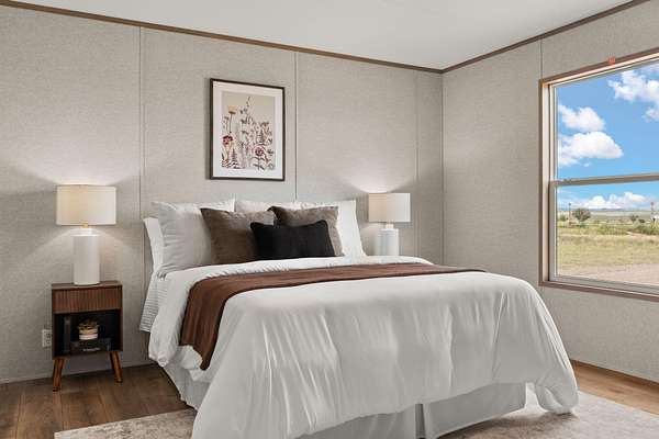 Take advantage of the seller's 1% credit for closing costs or a rate buy-down! This brand-new Champion home qualifies for USDA's $0-down loan, with estimated payments under $2,100/month including taxes and insurance (varies by lender, credit, and fees). Just south of Moriarty, this beautiful home sits on 2.32 acres, with a permanent foundation. Inside, enjoy 3 bedrooms, 2 bathrooms, an open floor plan, a spacious living area, and a large kitchen with a center island, ample cabinets, and abundant counter space. Additional features include refrigerated air, a smart thermostat, recessed lighting, walk-in closets, durable smart panel siding, and no carpet. The backyard is a blank canvas with stunning Manzano Mountain views and peaceful country living. Home warranty included!