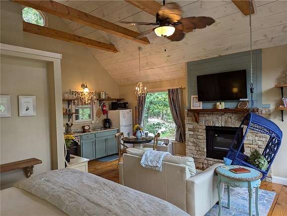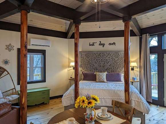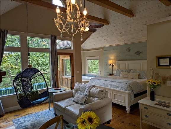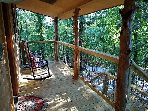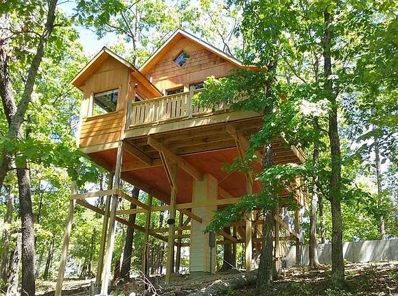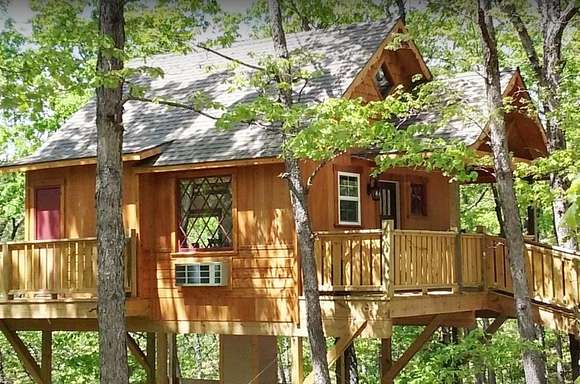Enchanted Treehouses is a popular luxury treehouse resort offering six custom treehouses and an office surrounded by 52 acres of park-like woods. Each treehouse comes beautifully furnished and has a stone fireplace, Jacuzzi for two surrounded by windows to take in the views, a separate bathroom with walk-in shower, king-sized bed, kitchenette stocked with dishes and cookware, an apartment-sized fridge, microwave, electric counter cooktop and coffee pot, gas grill on the back deck, cable TV and Wi-Fi. Infrastructure is in place for four more treehouses and two platforms have been built with architectural plans for two-story treehouses. You'll enjoy the seclusion and unrestricted land to expand. Live on site in the office or build a home on the property. The perfect terrain to create a trail system and close to trails at Leatherwood and Black Bass parks. Ideal location to expand into the wedding business. Fantastic website and 75,000 Facebook followers. Take the trolley 1.5 miles to downtown shopping and dining.