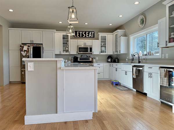 - Ceiling Fan(s), Kitchen Isle, Modern Kitchen, Open Floor Plan, Pantry