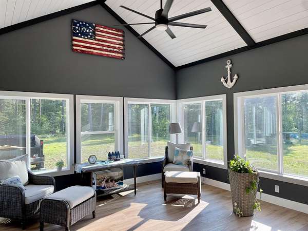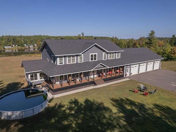 THIS BEAUTIFUL WATERFRONT HOME IS A MUST SEE!! When you pull into the private, paved driveway and then go around the curve and see this lovely house you will want to call it your home! This five year old home has it all...... hardwood floors throughout the first floor, open concept living space, 10' high ceilings, vaulted ceilings, recessed lighting, lots of windows for plenty of natural light, a heated 4 stall garage, soffit lighting around the entire house, LP smart siding, propane hot water heat, on demand hot water and much more! It's situated on 4.4 acres with 382 feet of waterfront and is surrounded by trees on 3 sides of the property for lots of privacy. You cannot see the home from the road. As you enter the front door you will see the grand foyer with a 20' ceiling with lovely lighting, an amazing staircase, a closet and a half bath. Then you will enter the living room which has glacier stone electric fireplace to keep you warm on cold nights. There are 2 sets of french doors in the living room as well. Off the living room is the large, beautiful kitchen with plenty of Kraft Made cabinetry, solid surface countertops, a large island that seats 5 people, a double gas oven, stainless steel appliances that convey with the home, a beverage refrigerator and a pantry. As you stand at the kitchen sink you can enjoy the view of the water. Then you will enter the spacious dining room, great for entertaining. Then you can either go back to the foyer area or into the 4 season sunroom that is 16' x 16' with a 14' vaulted ceiling and plenty of windows. There is a door to the back yard and a door the the front yard as well that leads out onto the large wrap around covered front porch. Also on the first floor near the living room is the large laundry room with cabinets and a laundry sink. Off the living room is a room that the current owners are using as a playroom but it could be a downstairs bedroom or an office. Upstairs you will find the very spacious primary bedroom with two closets and a primary bathroom with a vanity with double sinks, a tile walk in shower with cutouts, a rain shower head and a glass door. You will enjoy relaxing in the deep bathtub with lovely views of the river. There are 3 more great sized bedrooms upstairs with plenty of closet space. There is also another big bathroom with a bathtub/shower, a double sink vanity and a large mirror. The whole house is spray foamed with an additional 12" of blown insulation in the attic. The walkout basement with 2 sets of french doors, is ready for you to finish however you desire. There is plumbing ready for a full bathroom to be installed in the basement. There is a 200 amp electrical service with a 100 amp sub panel in the garage. The home is heated with a propane on demand high efficiency boiler - 240,000 BRU with an indirect water heater. There are 7 zones/thermostats and the boiler is super efficient. The attached, heated 4 stall garage is 62' wide by 40' deep with 12' ceilings. A set of stairs in the garage leads to a 62' by 16' space above it with 8' high attic style truss. This space could be made into a mother in law suite, an apartment or just for storage. Enjoy year-round relaxation in the sunroom or unwind on the large covered front porch overlooking the lovely yard or enjoy waterfront views in the back yard. Whether you're savoring your morning coffee by the river or hosting a summer BBQ and bonfire, there's ample space for outdoor activities on this wonderful property. This home is close to the Adirondacks, Lake Placid, Saranac Lake and many lakes to boat, fish and swim. This amazing waterfront home is a rare find, so schedule your showing soon!