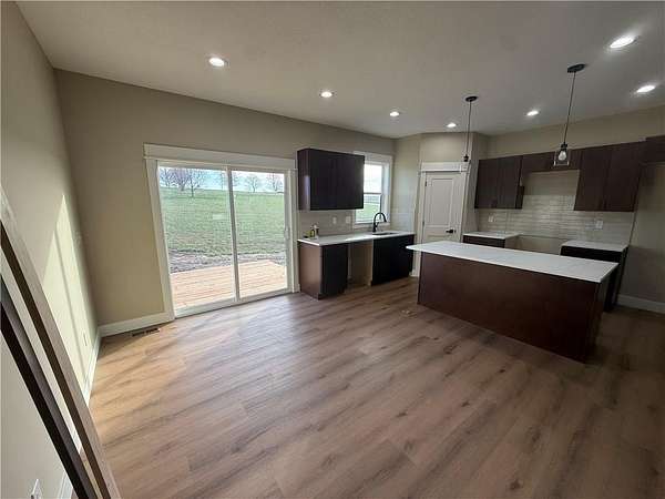 DISCOVER THE PERFECT BLEND OF MODERN COMFORT & PEACEFUL SURROUNDINGS IN THIS BRAND NEW CONSTRUCTION HOME! Enjoy the hillside setting in a rural subdivision just 2 miles South of Ottawa and easy I-35 access. This thoughtfully designed 4 br 2 ba home offers durable finishes like luxury vinyl plank flooring thru out which is ideal for both everyday living and entertaining! Roomy primary suite has walk in closet-lovely tiled shower and convenience of laundry just outside the door- Secondary bedrooms and additional bath are also located on this level as well as a Lovely kitchen w/island, pantry and beautiful wrought iron railings overlooking the large living room w/vaulted ceiling on the lower level. Enjoy the privacy offered w/the 4th bedroom on the lower level. Open layout provides welcoming flow , while large windows capture the Beauty of the surrounding landscape. Whether you're enjoying quiet evenings or quick commutes into town, this property delivers the best of both worlds! Taxes are on vacant lot only-Will change when re-evaluated w/new const. Floorplan is for illustrative purposes only. All dimensions and layouts are approximate.