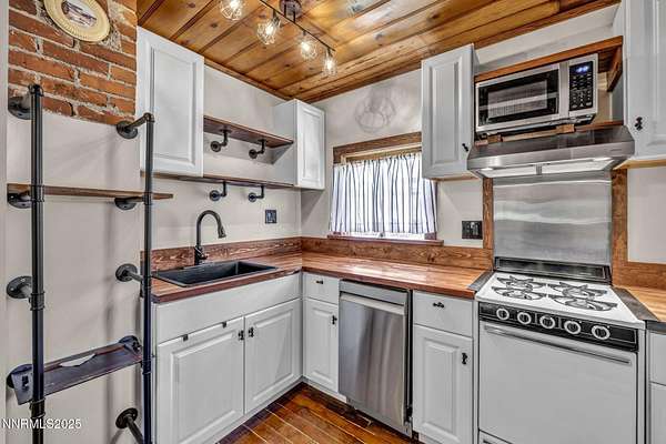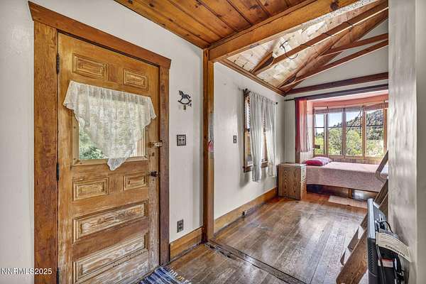 Charming Historic Gem in Silver City! Step back in time with this beautifully updated 1900s home. The property is being sold with 285 Main Street (APN#: 008-01-604). The main structure on the Fourth Street property has a square footage of 419 sq. ft. and the main structure on the Main Street property has a square footage of 384 sq. ft. for a total combined total square footage of 803 sq. ft. The property at 70 Fourth Street has a .61 acre lot, and the property at 285 Main Street consists of a .33 acre lot, for a total combined acreage of .94 acreage. The open-concept layout at 70 Fourth Street features an updated kitchen, full bathroom with shower stall, convenient laundry room, and a versatile loft area perfect for extra sleeping or lounging. The home's interior boasts gorgeous wooden ceilings with exposed high beams, rich wood floors, and abundant natural light that adds warmth and character throughout. Relax on the charming covered deck and take in the peaceful surroundings. The property includes two additional structures - one ideal for storage, and a larger shed that's perfect for a workshop or studio space. With plenty of room to expand or build further, this property offers endless potential. Whether you're seeking a weekend escape, full-time residence, or creative retreat, this Silver City treasure is not to be missed! The adjacent property at 285 Main Street currently does not have a viable working septic system but could be used as an office or an additional storage area. The property at 285 Main Street is being sold with 70 Fourth Street as access to 70 Fourth Street is across the front of the 285 Main Street property and also across the lower corner of APN#: 008-01-706 via an Access and Parking Agreement.
