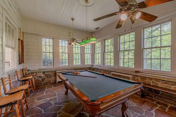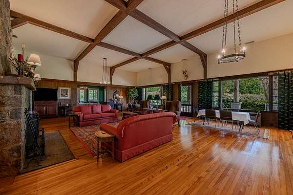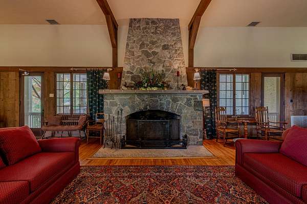 A unique property now offered for sale...This beautiful Southern Gem, built in the early 1900's under the vision and leadership of Mr. Benjamin D. Riegel, is known as the Lodge. Mr. Riegel, a New York businessman, purchased the Trion Factory (today Mount Vernon Mills) and had a keen business sense and prosperous vision for Trion, Georgia during that era of time. This lovely property has served as a lodging facility for Mount Vernon Mills' constituents and employees from other areas of the country since its origination. Today...this property continues to serve the same purpose. This Southern Beauty is privately tucked in the corner of the Trion Golf Course and sits on 13+ acres along the Chattooga River. It boasts a total of 6 rooms for overnight stay, 7 baths, a large gathering room, dining room, billiard room, kitchen & prep center, laundry center, and mechanical room. Also, with moderate restoration, the lower terrace offers 2 additional rooms for overnight stay with 1 bath...Outdoors you will find a flagstone front porch that wraps to the right leading into the gathering room, dining room, or billiard room. Also, a nice feature on the backside is the gathering porch with a woodburning fireplace. A guest house offering 2 bedrooms is also offered with this property as well. The grounds offer much Southern charm with mature holly bushes framing the landscape that offers an abundance of boxwoods, heirloom azaleas, nandinas, mature crepe myrtles, mountain laurel, gardenias, oak trees and more...with a private pond in back! This unique property, offering such Southern charm & grace, could serve as a private home as well. With the new owner's vision and a modest restoration budget, this property can be returned to its original grandeur! Please call for further details and showing opportunities! Note: Original structure build date -Circa 1900's/Renovations on public record - 1960