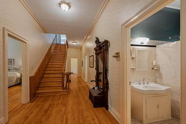 - Bookcases, Built-In Features, Ceiling Fan(s), Chandelier, Crown Molding, Double Vanity, High Ceilings, High Speed Internet, Natural Woodwork, Open Floorplan, Pantry, Plumbed, Primary Downstairs, Recessed Lighting, Separate Dining Room, Separate Shower, Sitting Area, Tub/Shower Combo, Walk-In Closet(s), Wired For Data
