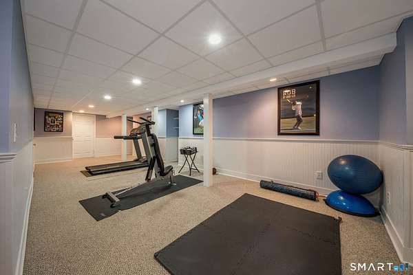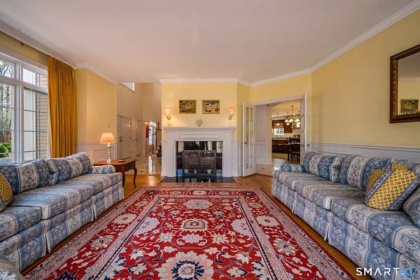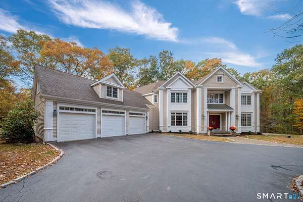 Nestled in a sought after neighborhood and privately set back from the cul-de-sac, this beautiful and well maintained Madison Colonial features 5 bedrooms and 4.5 baths with a layout that works for today's busy lifestyle. A grand marbled foyer welcomes you and provides easy flow to the formal Living and Dining Rooms. The well-appointed Kitchen features multiple eating areas, high-end stainless appliances, granite counters, a pantry area and opens to a warm, sunken Family Room. This room is highlighted by a classic fireplace and sliders to a bluestone patio-perfect for everyday living and easy entertaining. There's also a sweet hidden back nook great for dogs and dirty paws. The 1st floor also includes a guest bedroom with ensuite bath, generous closet space, and direct access to the 3 car garage. Upstairs are 4 nicely sized bedrooms, a nicely sized second-floor laundry room, and a large playroom ideal for sleepovers and playdates. The Primary features gleaming hardwood floors, a dedicated dressing area, and a spacious bath. One bedroom offers a private bath, while the remaining two share a full bath with double vanities. The finished lower level (not included in the square footage) provides flexible space for a home gym, office, or play area. Outside, enjoy a huge yard! This street is desirable for bike riding and trick-or-treating. Fun Fact:the house is walking to the distance elementary school making those busy mornings a smidge easier. A wonderful home with heart and soul!
