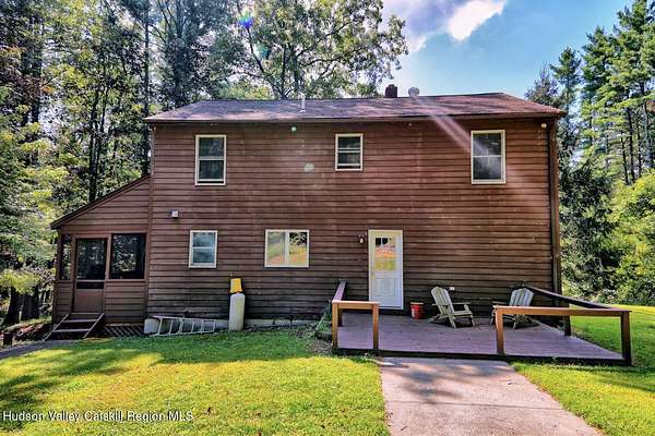 Welcome to this rare find! With over 17 acres, a private beach and access to the Catskill creek, this is a one of a kind property. This 3 bedroom, 2 bath house was lovingly built by skilled craftsmen. The home features a living room, kitchen, dining room, and an extra family room on the first floor, which could be converted into a 4th bedroom. Also featuring a full basement, attached garage, and enclosed 4 seasons porch, to enjoy your seasonal views of Windham and Round Top mountains. Explore and forage the 17 acres, recreational 4wheeling and snowmobiling, and relax on your private beach access to the creek. Minutes from Windham and Hunter mountains You have the privacy this property affords, but are conveniently minutes from shopping and restaurants. 15 minutes to the NYS thruway and 20 minutes to the Amtrak station.