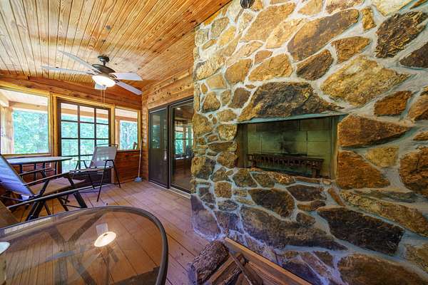 Screened-in porch with its own fireplace--perfect for morning coffee, evening cocktails, or year-round wildlife viewing