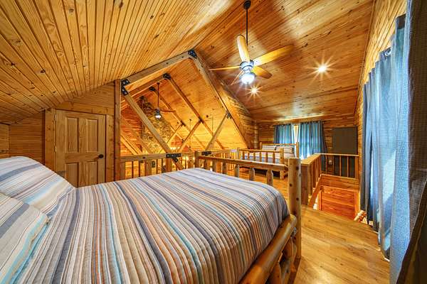 Loft area with space for bunk beds, queen beds, or a sitting area--ideal for hosting guests