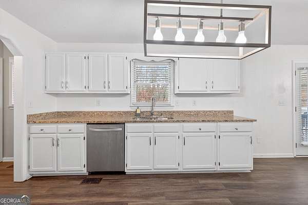 Welcome home to a beautifully updated ranch with a finished basement, tucked away on a private 2.3-acre cul-de-sac lot in Douglasville. This home blends space, style, and convenience-perfect for buyers looking for room to breathe without sacrificing location. From the moment you arrive, you'll fall in love with the freshly painted exterior and the cozy covered front porch, ideal for morning coffee or winding down in the evenings. Step inside to discover recently installed LVP flooring, a remodeled kitchen with stainless steel appliances, granite countertops, and an open, inviting layout designed for everyday living and entertaining. The vaulted primary suite is a true retreat, featuring generous space, abundant natural light, and a walk-in closet. Downstairs, the finished basement offers endless possibilities-media room, home office, gym, guest suite, or extra living space. Outside, enjoy the peace and privacy of a large, wooded cul-de-sac lot with plenty of room for outdoor living, gardening, or future expansion. All of this is just minutes from I-20, shopping, dining, and everyday conveniences. THE STOVE AND MICROWAVE WILL BE INSTALLED Sat 2/14.