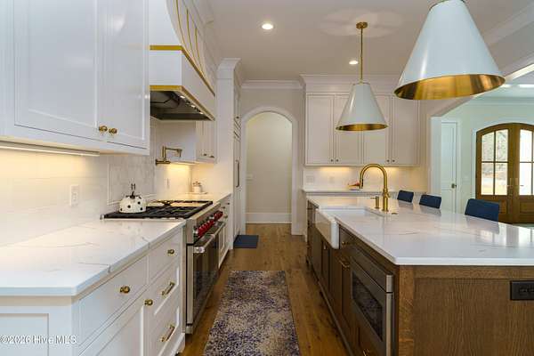 70 Lake Dornoch is a quintessential Pinehurst home with a new look and modern concepts. Overlooking the 17th hole of the Dogwood course and view of Lake Dornoch, this home offers convenience to all the clubs amenities. Completed in 2024, this stunning 4-bedroom, 3.5-bath custom residence offers refined design and effortless indoor-outdoor living within the prestigious gated community of CCNC. The striking white brick exterior sets the tone for the elevated finishes throughout. Inside, hardwood floors, designer lighting and a show stopping chef's kitchen featuring an oversized island, premium appliances, and custom inset cabinetry. The light-filled open layout flows seamlessly to a covered rear porch with fireplace - perfect for year-round entertaining. The main-level primary suite offers a spa-inspired bath with soaking tub and glass-enclosed shower. Perfectly positioned to capture tranquil golf course views, this home blends timeless architecture with elevated finishes. Enhancing the property's exterior utility, the estate is equipped with a sophisticated 10-zone irrigation system. This high capacity network efficiently draws water directly from the lake, providing a sustainable and cost-effective solution for maintaining the home's lush, professional landscaping year-round. The blue stone circle drive is welcoming to you and guest. The split 3 car garage along with multiple large storage areas is a great place for golf clubs, bikes, maybe even a private golf cart if CCNC allowed them (which they do not). This is truly a one of a kind home in one of the premier gated golf communities in Pinehurst. CCNC offers 2 world class golf courses (Dogwood and Cardinal), tennis, pickleball, pool, 2 lakes (Watson and Dornoch) along with multiple other smaller ponds that offer fantastic fishing and boating. This truly a one of a kind opportunity in The Country Club of North Carolina.