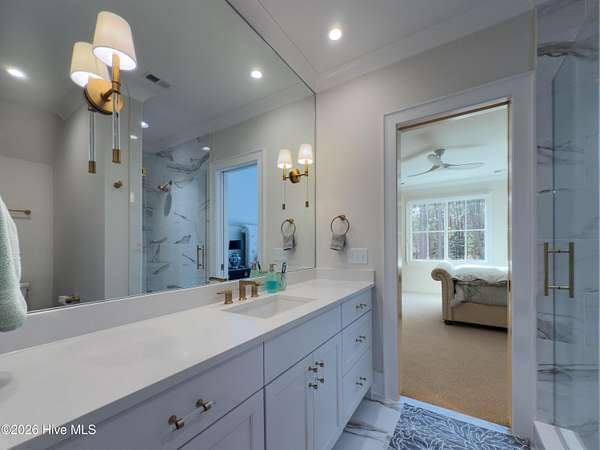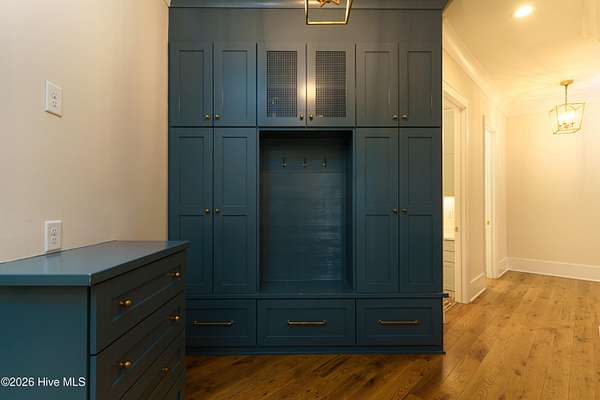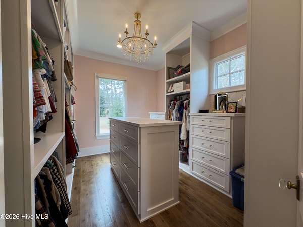 - Blinds/Shades, Ceiling Fan(s), Gas Log, High Ceilings, Kitchen Island, Master Downstairs, Mud Room, Pantry, Sound System, Tray Ceiling(s), Walk-In Closet(s), Walk-In Shower