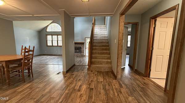 Country Living on 5.77 Acres! Discover the perfect blend of space, comfort, and thoughtful updates in this charming 3-bedroom, 2.5-bath home with room to grow. Nestled on 5.77 acres, this property offers privacy and peaceful surroundings while still delivering modern conveniences. The beautifully redesigned kitchen is a standout feature, complete with a gas cooktop, double ovens, a pot filler, and a stunning finished wood island--ideal for both everyday living and entertaining. The kitchen opens seamlessly to the family room, where a soaring cathedral ceiling and gas log fireplace create a warm and inviting atmosphere. The main level features two bedrooms that share a full bath, along with luxury vinyl plank flooring throughout. Elegant wood steps lead from the foyer and dining room down to the sunken family room, adding architectural interest and charm. Upstairs, the private primary suite offers a peaceful retreat with views overlooking the spacious backyard. The unfinished basement with a half bath provides endless potential--whether you envision additional living space, a home gym, or a workshop, it's ready for your personal touch. Enjoy the beauty of country living with room to roam, all while having a thoughtfully updated home to call your own. Seller is offering $6,000 concession. Home is USDA approved!