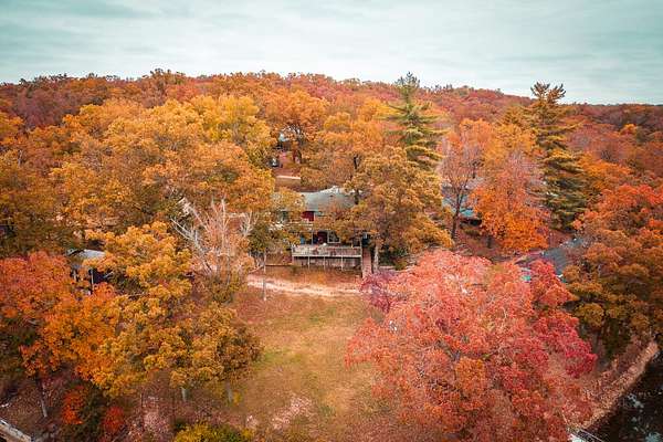 Nestled on a prominent point at the 3.5-mile marker on Lake of the Ozarks, this expansive property boasts over 800 feet of scenic shoreline. The main home features dual living spaces on two levels, each complete with kitchens, fireplaces, and a deck offering stunning lake views. A standout for investors or developers, the property includes 12 rental units, with a mix of four 3-bedroom cabins, four 2-bedroom cabins, and four efficiency apartments.