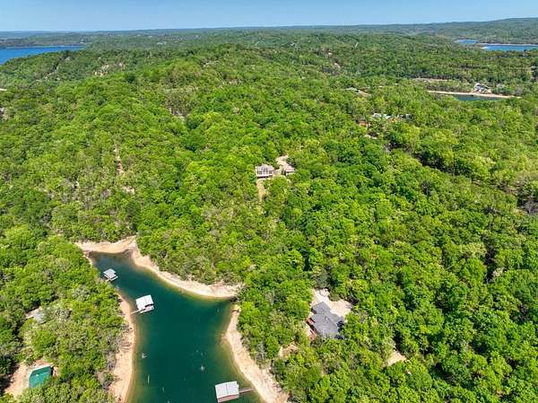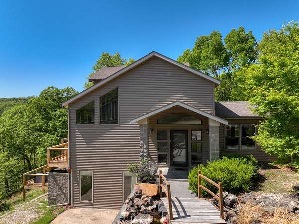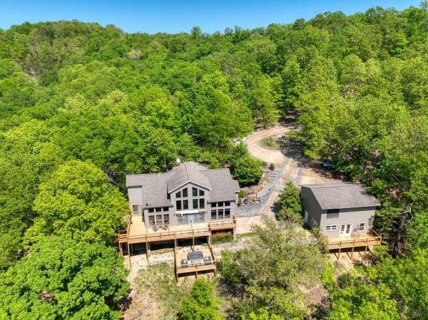 Take a look at this private, 6 acre Beaver Lake front property! Hike on your own ground and walk down to the clear water of Beaver Lake! This beautiful 4 bed/4 bath, 3244 square foot main home sits next to the cozy 1 bed/1 bath, 672 square foot guest quarters located below the detached garage. Both buildings have a view of the water and are secluded, but easy to get to on paved roads! Relax and enjoy the lake view from any of the three recently rebuilt decks. The open floor plan feels great with large windows everywhere you look! The master bedroom is on the main floor, along with a large loft above, and a large lower level with two additional bedrooms. This house is located very close to Starkey Marina and the amenities and fun of Eureka Springs are only a short drive away!