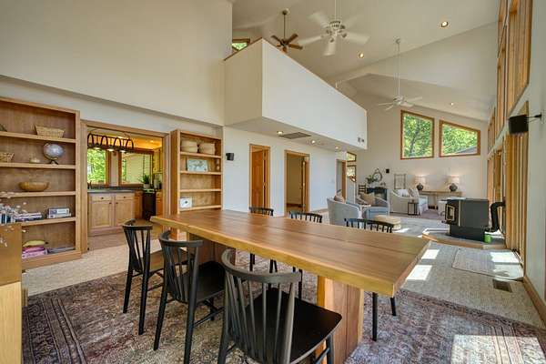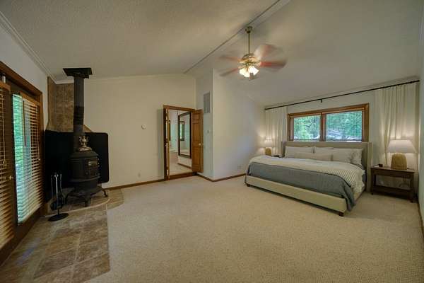 - Built In Features, Cathedral Ceilings, Ceiling Fans, Eat In Kitchen, Walk In Closets, Window Treatments, Wood Burning Stove