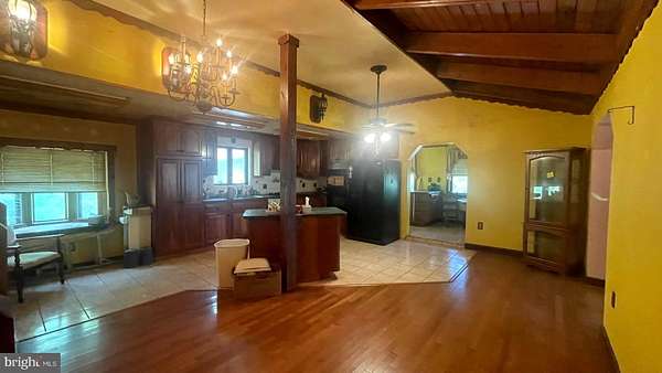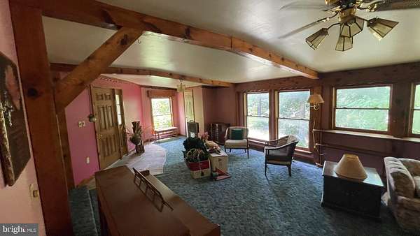 PRICE REDUCTION!!! Call now to see this very large and spacious 2 bedroom, 2 bath home with plenty of room and a basement. The home has a living room, kitchen, dining area, plus a den plus a two car garage. This large home is located on an 11 acre wooded parcel. There is a separate log building and large equipment shed with workshop area. The property needs to be updated and can use a remodel or repairs. For lots of privacy this dwelling is located near the end of a cul de sac so very few people or vehicles will be coming by. Sit on the front porch or on the private deck and watch the deer, turkey and other animals . On a clear night you will delight to see the moon, stars, satellites and shooting stars. This is a great find for someone who wants a get away and need a rural oasis The house has some items remaining which will be left .