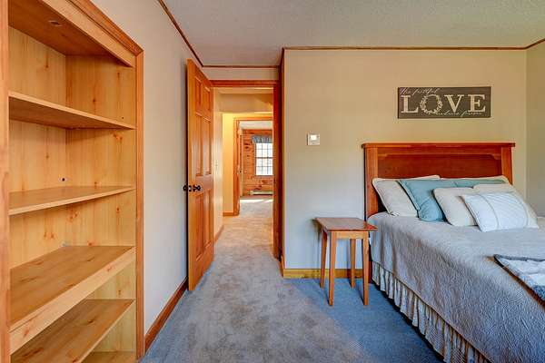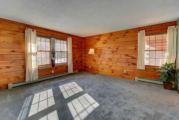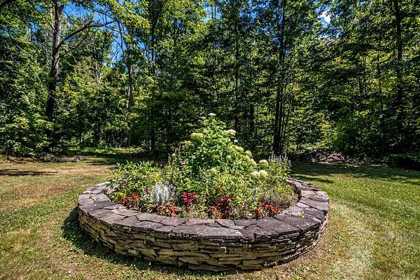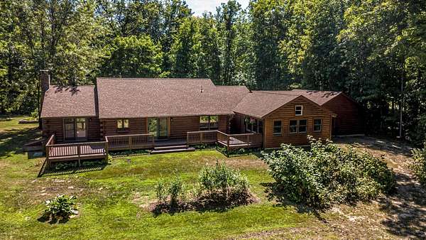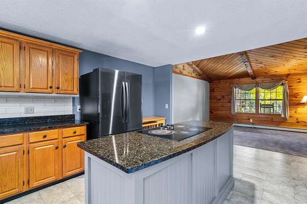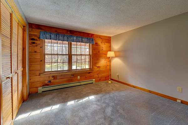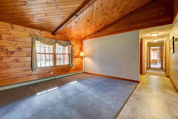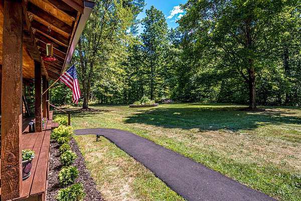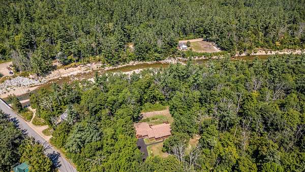 Just a short stroll from Bartlett Village, this stunning Lincoln Log home sits on nearly 9 acres of natural beauty with an incredible 1,000 feet of Saco River frontage. Inside this single-level White Mtn oasis you will find 2 bedrooms, 2 baths, a bonus room and a spacious rec room with its own private entrance, cathedral ceiling and a kitchenette perfect for additional guests or entertaining. The eat-in kitchen comes equipped with a new fridge and dishwasher, and the living room boasts another cathedral ceiling plus a cozy wood stove for the colder months. The recently remodeled primary bath features a spa-like double walk-in shower with glass barn door enclosure tucked separately from the double vanity. In the summer enjoy the luxury of your own private beach with mountain views of Attitash and Bear Peak, and when the snow flies grab your snowshoes or cross-country skis to enjoy the trails from your doorstep. The property is beautifully landscaped with vibrant perennials, mature berry bushes, and an oversized garden space ready for next season's harvest. Thoughtful and extensive updates include a new roof, Anderson French doors, front door, new deck prewired for a hot tub, garage doors, boiler, water heater, luxury vinyl plank flooring, carpet, and a freshly paved driveway. Located in low-tax Bartlett, moments from vibrant North Conway and Attitash Mountain Resort, and under 30 minutes to four premier ski destinations, this home is a gateway to year-round adventure.