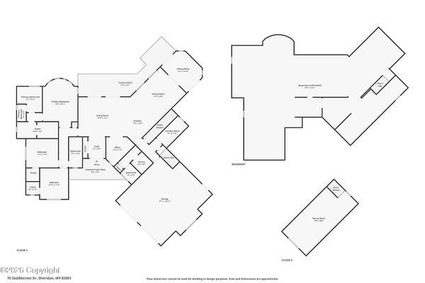 Call/Text April Poley with EXP Realty for more info or a virtual showing: 307-622-8993. Set on 2.74 acres with sweeping views of the Bighorn Mountains, 70 SaddleCrest Drive offers an exceptional level of craftsmanship rarely found in new construction. This residence was designed with longevity, comfort, and understated elegance in mind, combining classic materials with modern systems and thoughtful spatial design.The home features 2,414 sq. ft. of main-level living, complemented by a 370 sq. ft. bonus room above the garage. A 2,098 sq. ft. unfinished basement with 9-foot ceilings, built-in storage, workbenches, egress windows, and plumbing in place for a future bathroom allow for seamless expansion while maintaining quality throughout.A full custom brick exterior with detailed