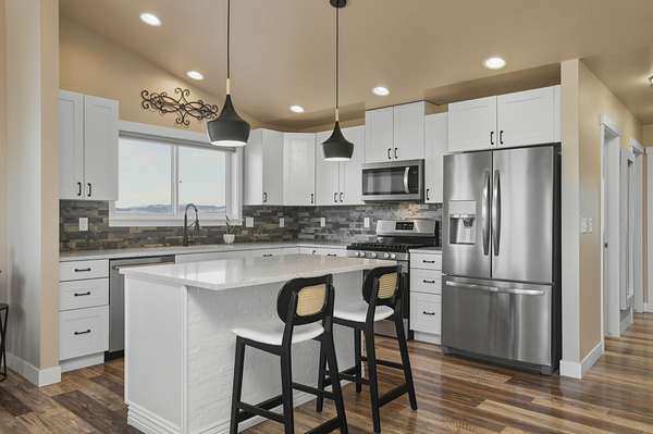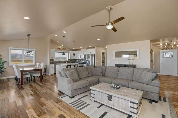 Built in 2020, this beautifully crafted 3BD/2BA home offers 2,042 sq ft of refined main-level living with sweeping views of Canyon Ferry Lake & the Elkhorn Mountains. The open-concept design blends comfort & elegance, featuring a warm wood stove fireplace & a stunning kitchen with quartz-style countertops, white cabinetry, stainless appliances, & a striking breakfast bar island. The primary suite, 2 additional bedrooms, bathrooms & spacious laundry/mudroom are all thoughtfully positioned on the main level. A walkout deck off the living & kitchen area offers seamless indoor-outdoor living-perfect for entertaining or taking in Montana's unforgettable sunsets. The unfinished walkout basement provides an additional 2,042 sq ft of framed & insulated space ready to expand with up to 3 bedrooms, a bath, & generous living area. Set on 3.86 acres with horse corral, just minutes to Townsend & 25 minutes to E. Helena this is Montana living at its finest-space, views, & endless possibilities. Outside the home has an underground French-drain to divert sloping moisture away from the home. Drip system for trees and shrubbery included. Owned 1000-gallon, buried propane tank. Fully fenced approx. 0.9 acre corral with 3' & 8' swing gates. Extra large turn-around driveway with side driveway to rear of the home near the corral.