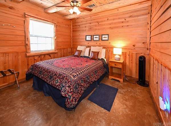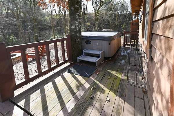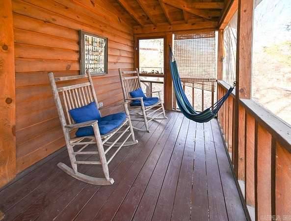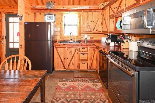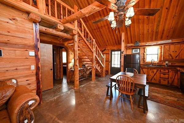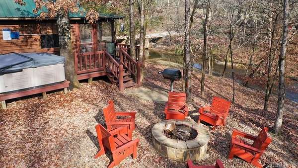 Charming log cabin nestled along the banks of Lick Creek in Norman, Arkansas. Currently operating as a successful vacation rental, with profit and loss statements available upon an accepted offer. In addition to the cabin, the property includes extra creekside land featuring RV hookups--perfect for expanding rental income or hosting guests. The cabin offers a warm and inviting layout with two bedrooms on the main level and a spacious loft upstairs. It is being sold fully furnished, making it truly turnkey. Enjoy peaceful creek views from the screened-in porch, which opens to a back deck with a seating area and hot tub. Beyond the deck, a fire pit and outdoor seating create the ideal setting for relaxing evenings by the water. Recent owner improvements include a new HVAC system, tankless water heater, refrigerator, fireplace insert, hot tub cover and heater, washer and dryer, and new water lines to exterior spigots. This unique creekside retreat combines rustic charm with modern upgrades and income-producing potential.