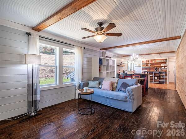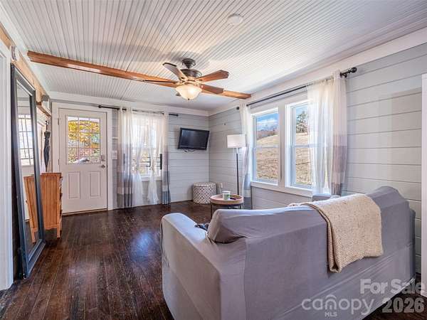 Over 12 acres of pristine, rolling hills and farmland just minutes from town-this is the romantic mountain lifestyle you've been waiting for. Ideally located less than 2 miles from Canton and a short drive to Waynesville and Asheville, this rare property offers the perfect balance of privacy and convenience. The land is rich and ready-currently home to chickens, cattle, and a thriving vegetable garden-while the charming cottage sits tucked between two rolling pastures alongside a picturesque creek. There is also a second wired, two-story structure with an incinerator toilet currently used for guests and flexible for visitors, studio space, or income potential. A strong-producing well (30 GPM) services both the main home and the guest dwelling and the property's open-use zoning invites endless possibilities. Live comfortably in the cottage while you build your dream home on one of several stunning homesites-including a mostly cleared upper build site boasting sweeping 250-degree mountain views at an easy 2815ft of elevation. Whether you envision a private estate, family compound, or farm, this land is ready to deliver. Located within the protected Canton watershed supply zone, it offers both natural beauty and long-term environmental value. Hike your own wooded trails, farm your land, and enjoy true peace and quiet-without sacrificing proximity to everything Western North Carolina has to offer. Videos of property are available. Opportunities like this are rare, come see what you are missing!