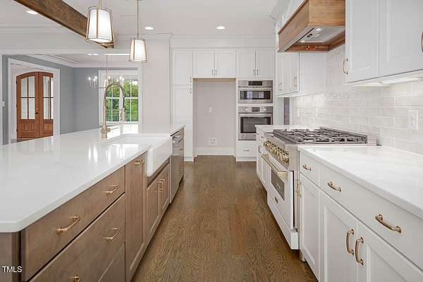 MODERN FARMHOUSE DESIGN 4690 SQUARE FEET UNDER ROOF WITH 3970 FINISHED HEATED. THIS DOES NOT INCLUDE PORCHES OR THE 3 CAR GARAGE. Build the hobby room of your dreams, or home gym, let your imagination guide you . The 1.5 ACRE LOT is large enough for future in ground pool and 2 car detached garage, first floor living and second floor guest suite, office/exercise room, bonus room with serving bar and sink,. 4 bedrooms 3 and a half baths, duel fuel Z LINE range with propane cooktop, electric oven. Spacious pantry with prep sink. FULL MASONRY FOUNDATION, SITE FINISHED HARDWOOD FLOORS, TUBS WITH CERAMIC TILE SURROND, WHOLE HOUSE GENERATOR, OVER 700 SQ FT UNFINISHED WALK IN STORAGE, EVERYTHING EXPECTED IN A CUSTOM BUILT HOME. 3 BEDROOS MAIN LEVEL. In ground 500 Gallon propane tank to be filled by buyers. Propane tank fuels generator, cooktop & gas logs. Cobblestone Village,in Rolesville Artisan Beer & Cheese, Jeffrey's Bagel Run, Lime & Lemon Indian Grill & Bar, Mezcalito Grill & Tequila Bar, Papa John's Pizza, Pixels Bar + Arcade, and Prima Cafe Co. PUBLIX GROCERY NOW OPEN IN ROLESVILLE