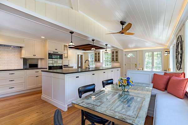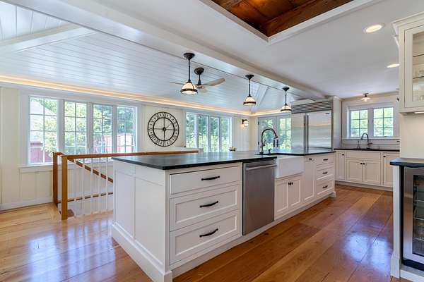 This completely renovated Colonial Farmhouse was recently appointed with all new bathooms. The property is sunny and bright with wide pine floors throughout. The kitchen features ship lap detail molding, a built in eating area and an office area. High end appliancees include: induction Wolf Cook Top, a Wolf Steam Oven, a Wolf L-Series Oven, a Sub Zero Refrigerator, a Sub Zero Wine Refrigerator, Bosch Dishwasher. An open and spacious dining room and living room flow from the kitchen area. The family room features floor to ceiling windows and heated floors. You can access the second floor from either the curved front staircase or a back staircase. On the second floor you will find a large primary bedroom with a king bed and new en suite bath. Another bedroom on the second floor features a queen bed and new en suite bath. The third floor has two additional bedrooms: one with two built in twin beds and the other with a full bed. A new full bath completes this level.Downstairs the ground level mudroom has radiant heated floor and locker storage area. A nicely appointed laundry room with LG washer and dryer, storage area, utility sink and a built in drying rack. There is also a cottage on the property equiped with a full bath that is currently being utilized as a home gym. Enjoy all this and manicured grounds, a firepit, stone terrace, expansive deck with a built in Lynx grilling station. Close to the beach, shopping, and Abenaqui Golf Course. Available to rent Nov-May.