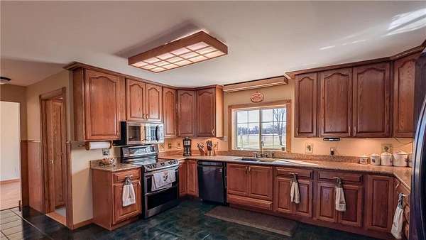 Est $2,942/moGet ready to celebrate anything on the deck/patio in the back yard or on the large deck on the front of the home. Spacious throughout this 5 Bedroom, 4 Bath Home situated on 1.73 acres on blacktop and close to town has double sided fireplace, main floor laundry, great master bed & bath. Plenty of space inside and out!