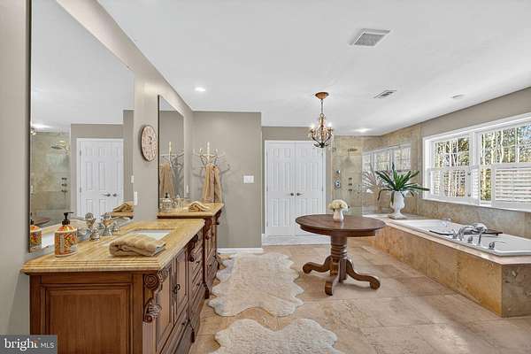 Welcome to Lac Clair, a serene estate, featuring a modern farmhouse where water, nature, and architecture meet in perfect harmony. Nestled within the rolling foothills of Battle Mountain, this exquisite property embodies the essence of refined country living with a modern resort-style twist. From its spring-fed ponds and salt water pool to the sweeping lawns, flowering dogwoods and curated trails through the enchanting forest, every detail of Lac Clair invites you to slow down, breathe deeply, and embrace the quiet beauty of the Shenandoah Valley. Inside, gracious living spaces, soaring ceilings, and elegant finishes create an atmosphere of effortless sophistication. Whether hosting family gatherings, relaxing by the water, or watching the sunset, Lac Clair offers a lifestyle of timeless elegance and natural serenity. Set at the end of a tree lined lane, on nearly 10 acres , this three level 5800+ sf home enjoys a welcoming stone pillared front porch offering plenty of room for rocking chairs and seating to enjoy. The spacious front hall can hold a grand piano, has a sitting area with garden views and bamboo floors flow throughout. A wide hall opens to the chefs kitchen featuring a 9x12 cherry butcher block island with 6 burner viking cooktop, high end stainless appliances, dual wine coolers and a large double doored pantry. The kitchen opens to the adjoining expansive light filled, cathedral ceilinged great room with French doors to the 2200 sf deck and salt water pool for family barbeques and entertaining. The separate dining room with bay window overlooking the front porch and grounds offers the perfect setting for more intimate formal dining, The cozy library with propane fire place and a family room for movie night ensures multiple options for family and friends. The marble floored laundry/ mud room has granite counters, a sink and direct access off the kitchen as well as a door to the attached three car garage and an exterior door to the front porch , maximizing functionality . A half bath off the double hall completes the main floor. Upstairs, you will find another extra wide hall with ample storage and 4 bedrooms. The sumptuous primary features a Juliet balcony, a glassed dual sided propane fireplace, sitting areas, a large walk in closet and an attached spa like full bathroom with travertine floors and counter tops on the cherry double vanity. Relax in the 6 ft jetted soaking tub or enjoy a steamy shower with dual shower heads and river rock flooring. Two additional bedrooms with a Jack & Jill bathroom and a nursery/office provide space for a growing family and guests. The carpeted finished basement offers an expansive place for recreation, an egress window and a large utility room with rough in for an additional bathroom. Raised garden beds, ancient oaks, dogwood, red bud, mulberry, crepe myrtle, hollies, cherry trees, hydrangea, wild blackberry and raspberry bushes provide a glorious setting. A 20x24ft barn provides room for a studio, equipment storage or livestock. A true gem for full time living or the perfect turn key second home in the Virginia countryside, Lac Clair is a must see for those seeking tranquility and modern amenities. See documents for full list of upgrades and amenities. Minutes to Warrenton 1.5 Easy hours to DC