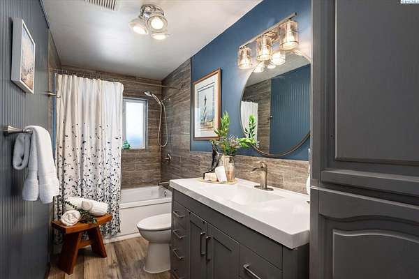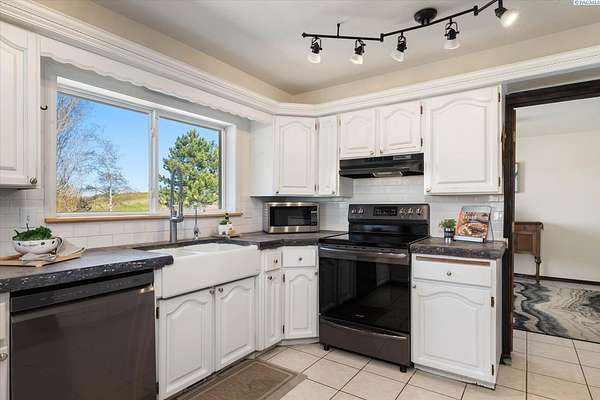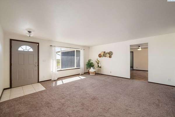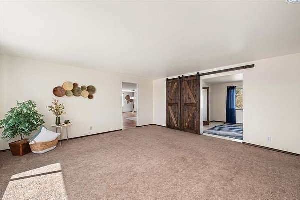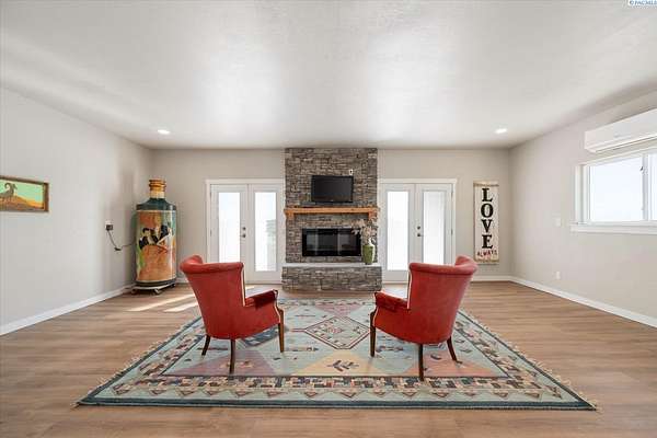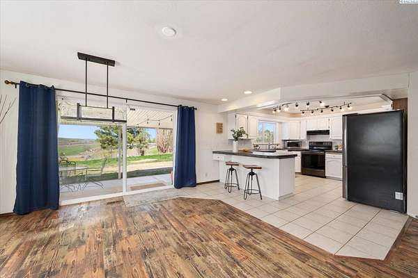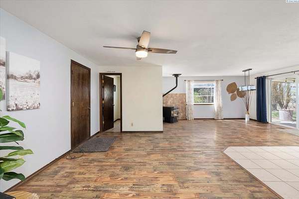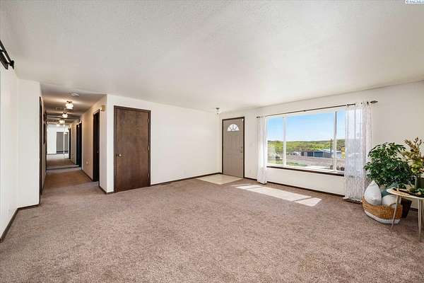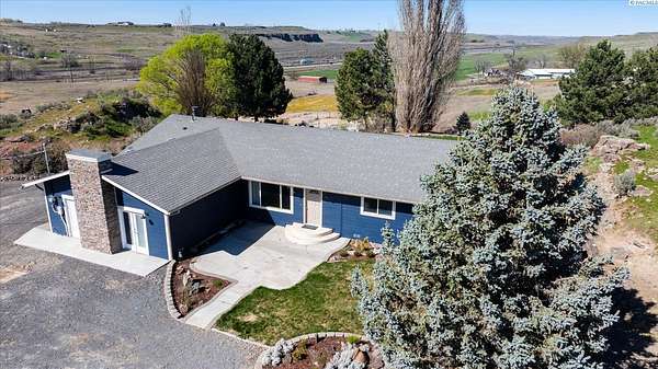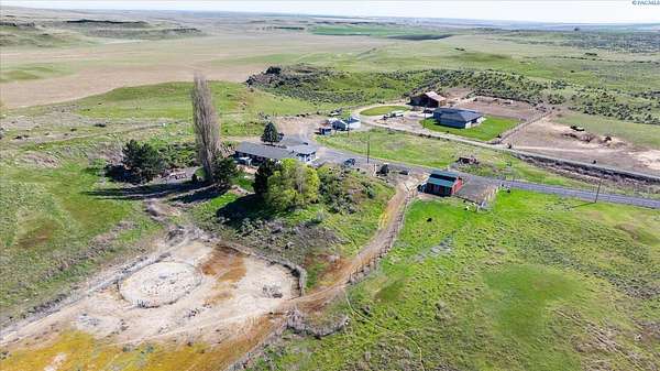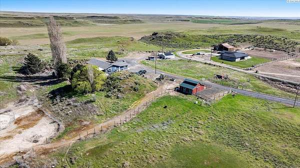 For those who want to really have some elbow room.... this is your place! Easy drive from Pasco, 25 minutes, and well worth it. Driving up 700 Blanton Road you will feel the world you came from begin to drift away. An electric gate opens to your own piece of paradise. Rip will be the first to welcome you, friendly, kind, and HUGE. The goats may be out walking around, or in the lovely 3 stall barn created just for them. The property is serviced with a K line irrigation system and a full arena with a round pen. Drive up to the house, get out of the car and turn around.. that's your land. All 19 acres, 9.5 of which have water rights that come with a certificate from the State. As you enter the home you're struck with that, wow, "this is pretty great" smile. A wonderful living room that has a large picture window so you can have all that natural light enter in. Dining is behind the farm door, that leads into the kitchen and family room, complete with pellet stove. There is a sliding door that leads out to the patio and more of the scenery. Back inside, on to the laundry room and the rec room / multi-purpose space, mini split heating & air keeps the room wonderfully temped. Bedrooms are on north side of the home, where a full bath, 2 secondary bedrooms, and Owner's suite & bath reside. Out side there is a shop that every land owner needs. This property is fully fenced and Rip goes with the land, and you'll be glad he does! Make this nugget of freedom your's, you'll love it!