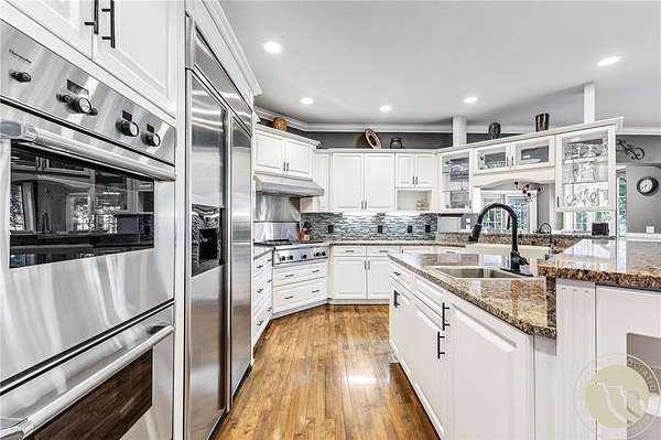 This stunning luxury home in Cloverleaf Meadows offers just under 7000 ft.2 of finished living space and over 2000 ft.2 of unfinished basement area ready for your personal touches or excellent storage. Situated on just under 2 acres the home features 6 bedrooms, including 4 with en suite bathrooms and 3 half baths. Designed for hosting and entertaining the layout flows beautifully throughout, highlighted by a large, elegant kitchen and abundant storage and gathering space. Enjoy extra home features with a dedicated office, a built in gym, and a private home theater for the ultimate lifestyle experience. A 7 car garage plus an additional concrete pad for a boat or RV complete this exceptional property with a beautiful pond in the backyard. Welcome to luxury space and functionality in one remarkable home. Info deemed reliable but not guaranteed/buyer and buyer's agent to verify.