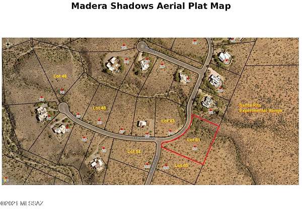 Spectacular 2.52 acre lot with breathtaking mountain views and abundant wildlife in Madera Shadows, a premier gated and ''all-ages'' community. This lot backs up to the Santa Rita Experimental Range (SRER). The 52,000 acre SRER is the longest continuously active rangeland research facility and biological field station in the U.S. Founded in 1903, it is run by the University of Arizona College of Agriculture. Quick 5-minute access to I-19 allows for 30 minute trips to Raytheon, Caterpillar, Davis Monthan AF Base, the U of A and downtown Tucson. Natural Gas, Water, Electric, Phone and Cable are available at lot line. Madera Canyon just minutes away for hiking and birding. Minutes to shopping and restaurants. GVR available if Buyer elects. Pick your builder or ours and build your dream home.
