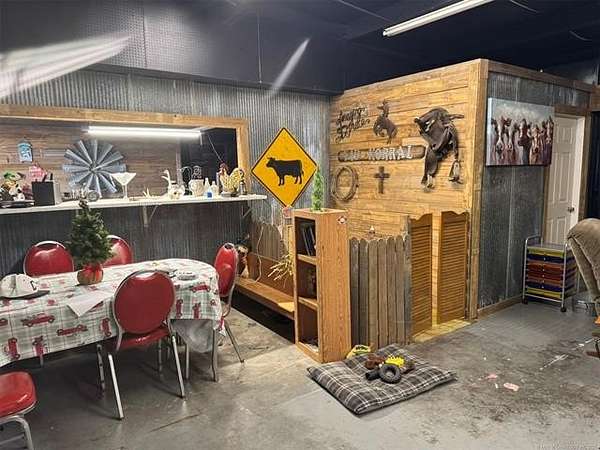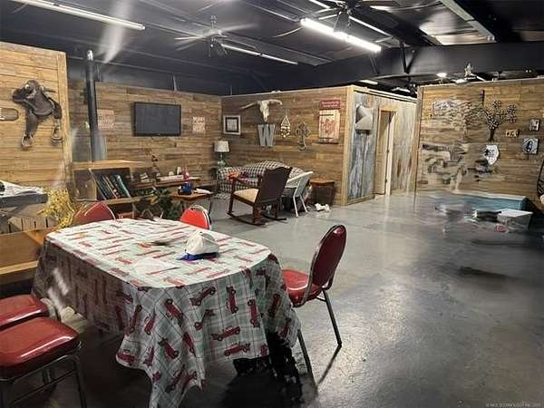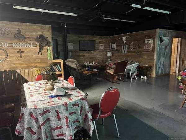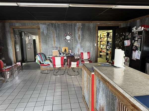 Motivated Seller! Located approx. 1 mile from Copan Lake. Commercial building on 2.3 acres m/l that has been converted to a Barndominium. Large living and kitchen area with 7 bedrooms. All bedrooms have closets but most do not have windows. Built in safe has been converted to pantry and can also be used as safe room. 2 car attached garage. 3 bathrooms all have showers. Second huge living space is separate and is currently used as an efficiency apartment. There are metal storage units with gravel floor containing 23 stalls and 2 large dog pens. This property has a ton of possibilities!