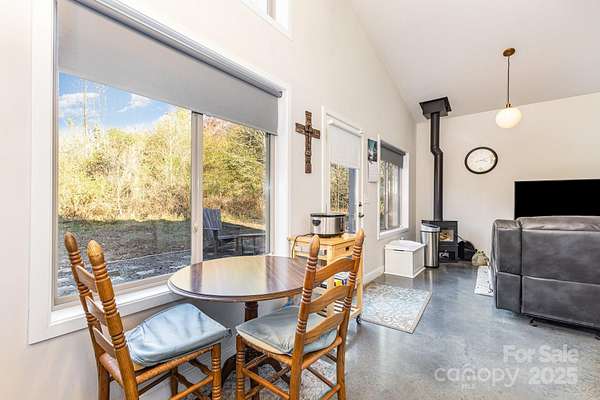 Est $1,515/mo2.8% Assumable FHA! Tiny Home Alert!This is a very unique property. It is set on 2+ acres with no HOA. One bedroom with living room and kitchen and 1 full bath. Entire home has polished concrete flooring. There is a storage unit that also conveys with the property. A/C unit replaced in 2023. There is a old fashion style wood burning stove tht will heat the whole house. This is a must see!
