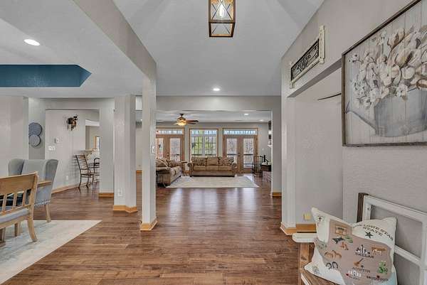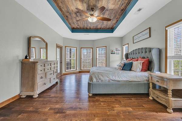 Sellers are relocating--your opportunity is here! This custom-built gem sits on 8.8 wooded acres with a peaceful spring-fed pond and is loaded with upgrades. Inside you'll find hardwood floors, solid wood doors, granite countertops, stainless appliances, and a stunning floor-to-ceiling gas fireplace. Two main-level primary suites, a formal dining room, and a home office add to the appeal. Upstairs: 4 bedrooms, including a second ensuite with a brand-new full bath. The basement has its own driveway, entrance, kitchen, full bath, bedroom, and bonus room--ready for Airbnb or rental. Extras include central vac, generator, Swann security, and a newer HVAC. About 3 acres are cleared--ideal for horses--and the 12x16 shed is wired, insulated, and lofted. Privacy, style, space, and income potential--this one truly has it all!