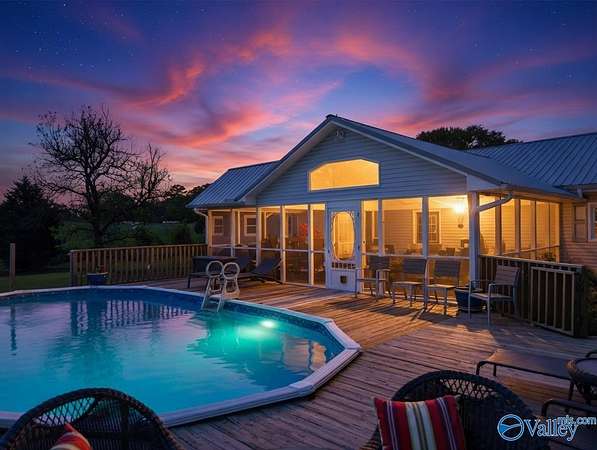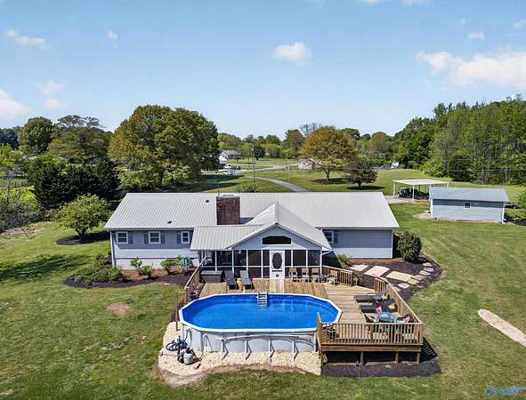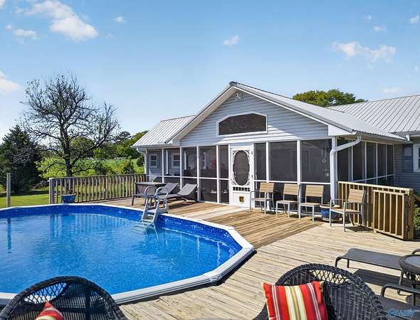 Looking for privacy, convenience and opportunity all in one ? This 1,792 sq ft home sits on 9.3 acres w/ a peaceful creek, just minutes from town. Featuring a NEW METAL ROOF, this property offers the perfect blend of comfort and country living. Enjoy the outdoors on the spacious 28x20 screened-in porch and large wraparound deck, or relax by the above-ground pool. The property also includes a garden area, detached shop, additional carport, and a two-car attached garage with large storage room adding plenty of space for hobbies, storage, and more. Along the creek, there is ideal space to add tiny homes etc. for a short-term rental setup with strong income potential.