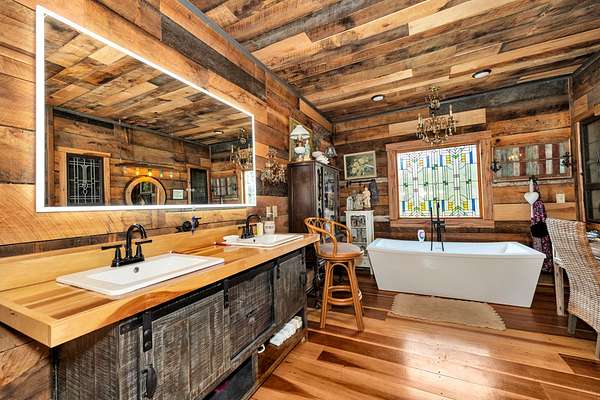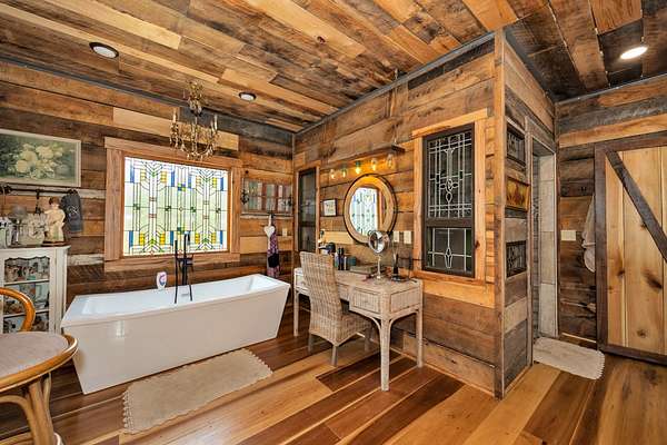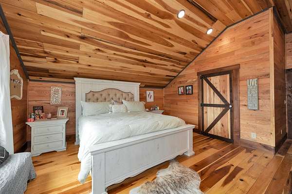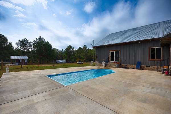 This like new custom 3BR/4BA 3997sf Barndominium has too many extras to list! Each bedroom has its own bath! On the main floor, the expansive living room and kitchen have vaulted ceilings and would be perfect for entertaining or family gatherings. The kitchen has custom walnut counters and a large walk-in pantry. The master bedroom and bath are a true luxury, with a soaking tub, two shower heads in a custom tile shower, and double vanities. There are two additional bedrooms and baths upstairs that also have custom tile showers and one has another soaking tub! Moving outside, the home has metal siding and roof with rock foundation & trim. There is a screened porch, gated pool, and carport.