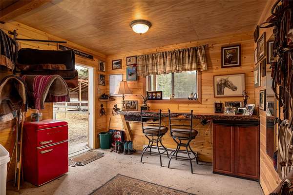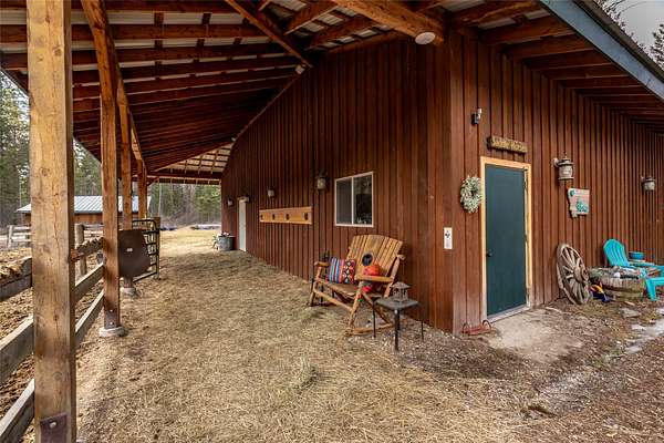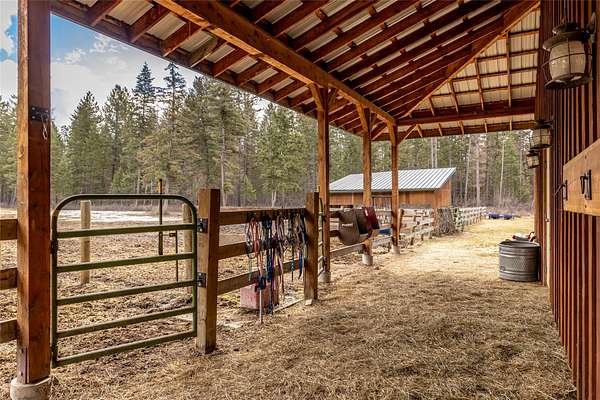 This premier 10-acre equestrian estate on KM Ranch Road offers a rare blend of functional ranch infrastructure and unparalleled Montana beauty. A true horse lover's dream, the property is fully equipped with professional-grade facilities, including a dedicated riding arena, a round pen for precision training, a tack room, and a substantial hay barn. One of the property's most exceptional features is its direct proximity to acres of Montana School Trust Land, providing a vast backyard for horseback riding, hiking, and exploring without ever needing to load a trailer. Beyond the equestrian amenities, the house features 2 bedrooms, 2 bathrooms, a loft bedroom, a remodeled kitchen and a terrific deck that takes in the surround views. The property features a spacious 672 sq. ft. detached garage and multiple versatile pole frame buildings, providing ample storage for vehicles, equipment, and mountain toys. The surrounding Whitefish area serves as an incredible backdrop, placing you just minutes from downtown Whitefish, the slopes of Whitefish Mountain Resort, and the clear waters of Whitefish Lake. Glacier National Park is only a 40-minute drive, making this a perfectly place property.