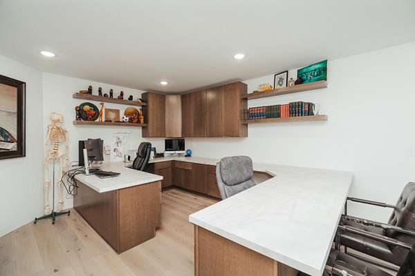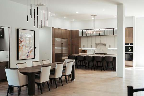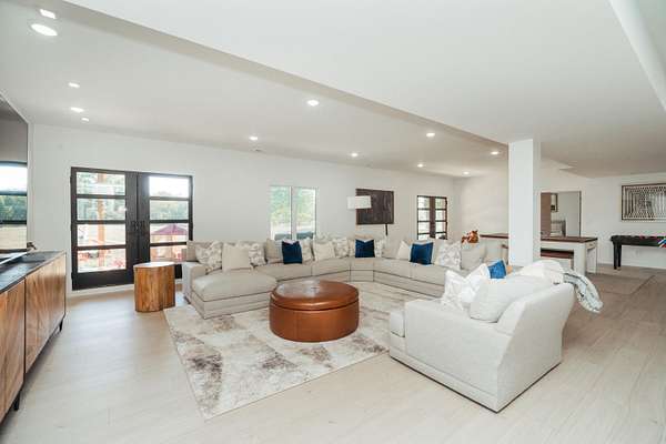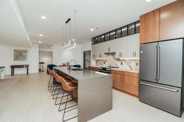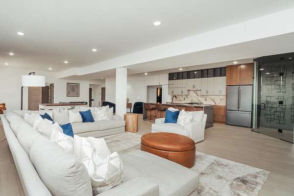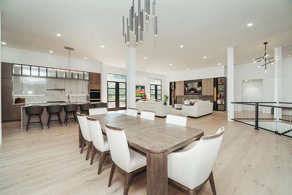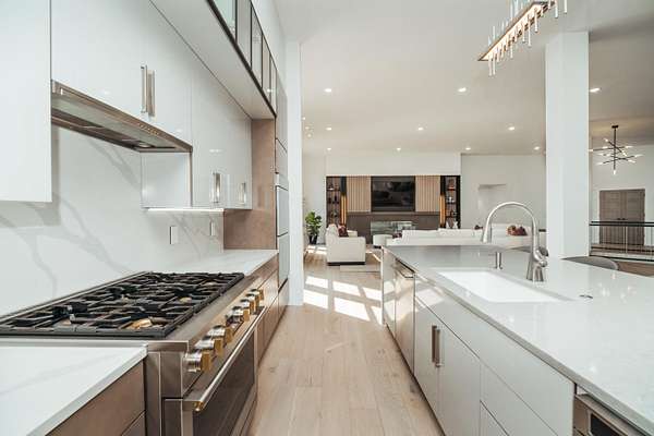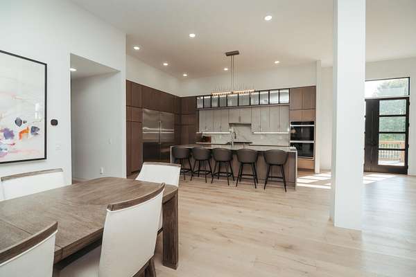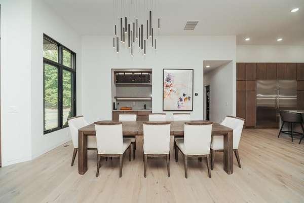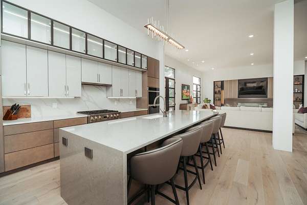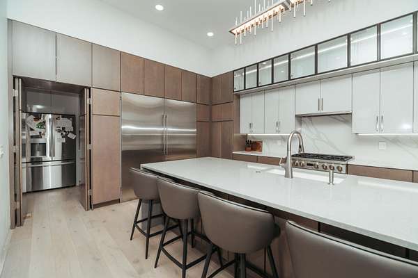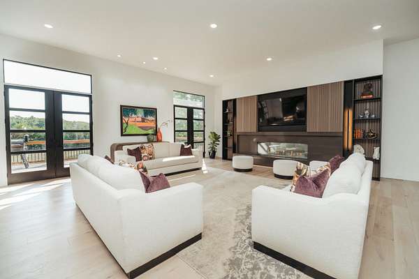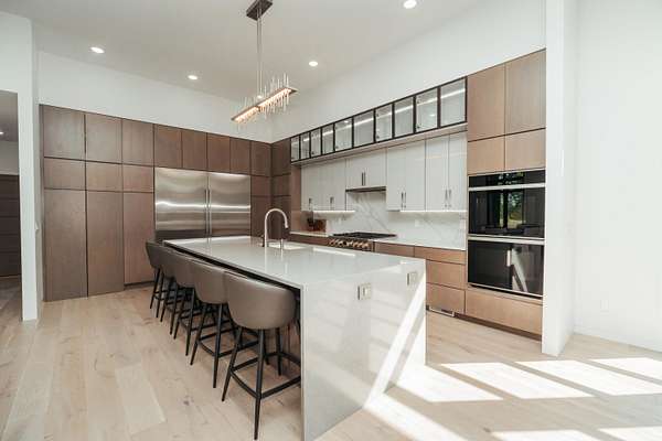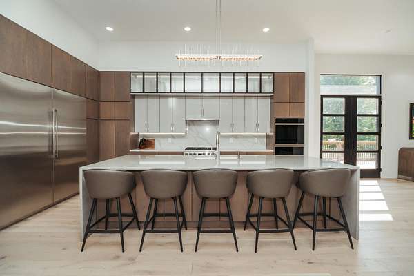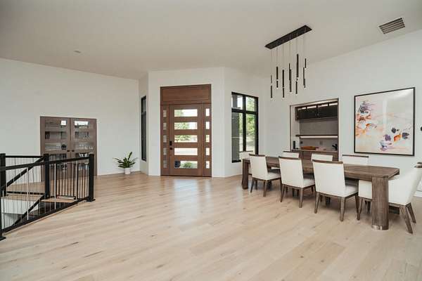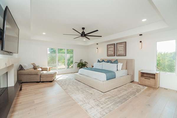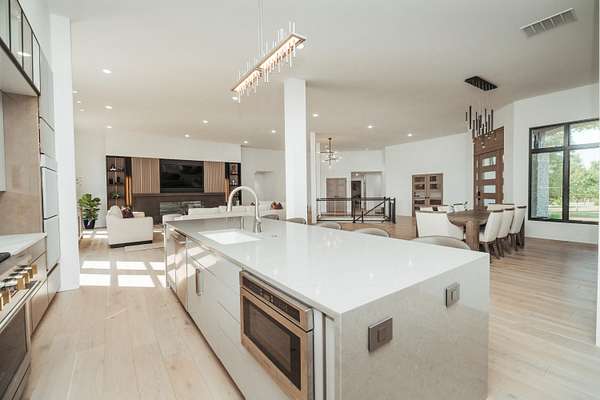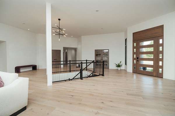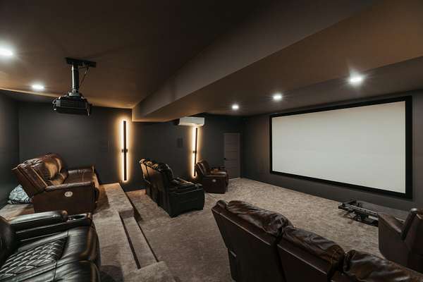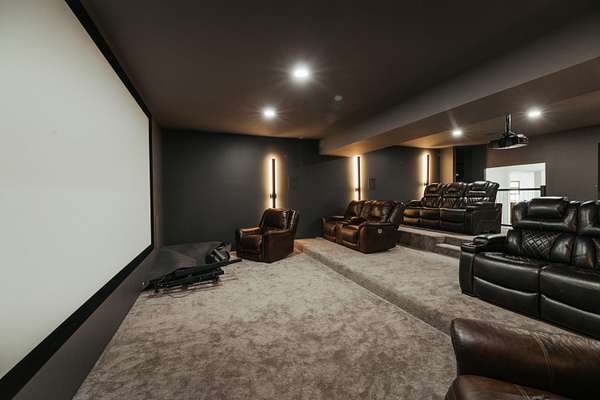 Experience luxurious living at its finest in this breathtaking 8,600 sq ft estate nestled on over 4 fully fenced, private acres. Behind an electronic gate, discover a masterpiece of design and comfort with 5 spacious bedrooms and 5 spa-inspired bathrooms, perfectly blending elegance and functionality.Entertain effortlessly in the gourmet kitchen featuring a commercial-grade refrigerator, premium appliances, and a walk-through butler's pantry complete with its own fridge--ideal for hosting large gatherings. The lower level offers a full second kitchen, adjacent to a walk-in wine cellar, creating the perfect setting for private dinners or extended guest stays.Indulge in cinematic nights in the tiered theater room, or break a sweat in your fully-equipped home gym. Work from home in style with a main-floor office offering quiet focus and natural light. The open-concept living room flows seamlessly into the primary suite via a striking see-through fireplace--adding warmth and ambiance to both spaces.Step outside to enjoy manicured grounds, a 30x30 shop for hobbies or storage, and plenty of space for future amenities. This exceptional property offers rare privacy and security without sacrificing access to modern convenience.Every inch of this home has been thoughtfully designed for luxury, comfort, and lifestyle--welcome to your forever estate.